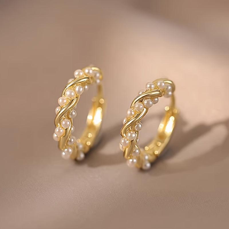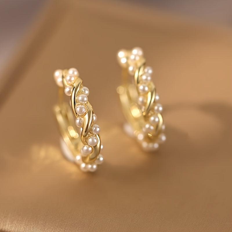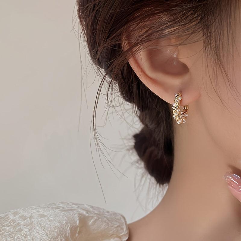 Add elegance to your look with these versatile faux pearl hoop earrings. Made with a copper base and nickel, these earrings are perfect for daily wear or special occasions.