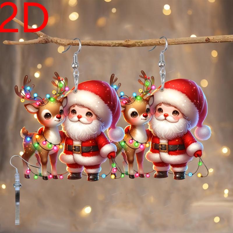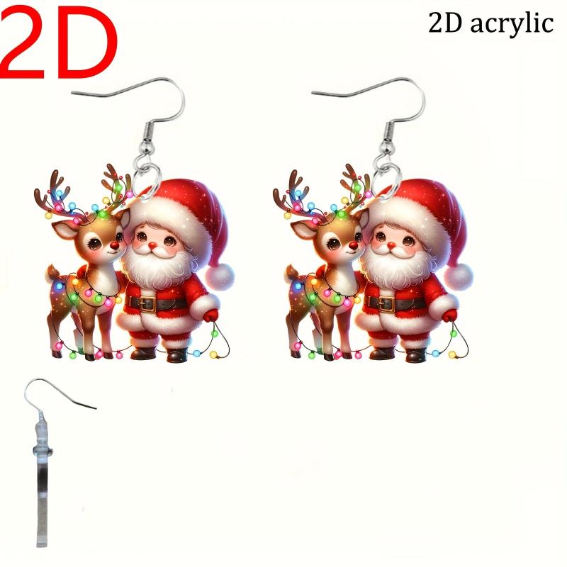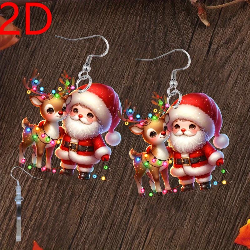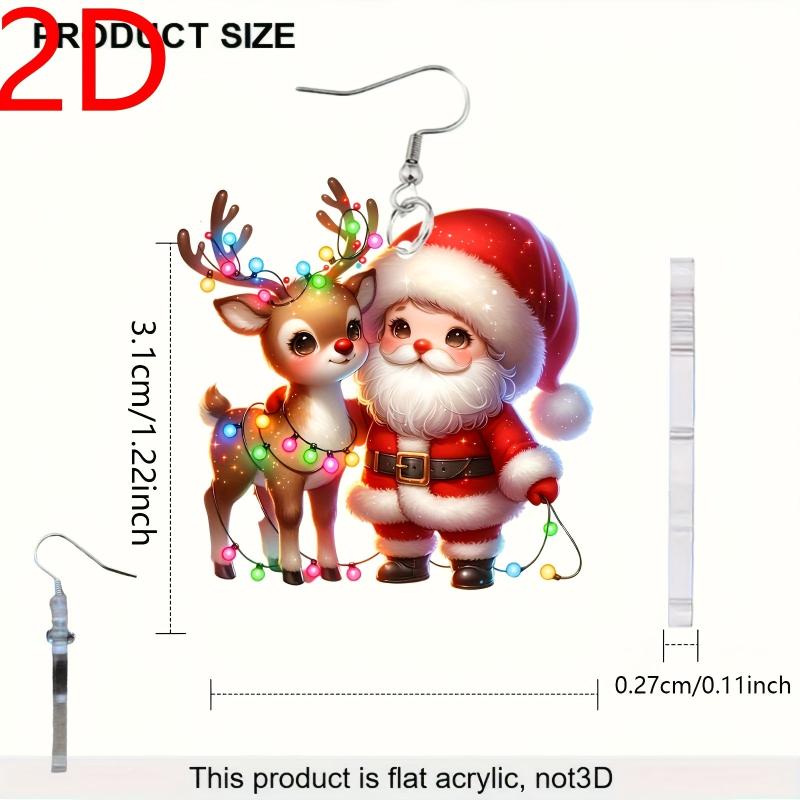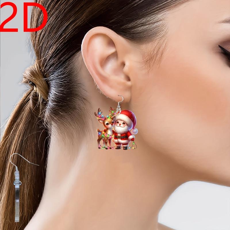 Get into the holiday spirit with these Christmas-themed 3D acrylic earrings featuring a cute reindeer and Santa Claus. Lightweight, durable, and fashionable, these earrings are perfect for adding a festive touch to your outfit.