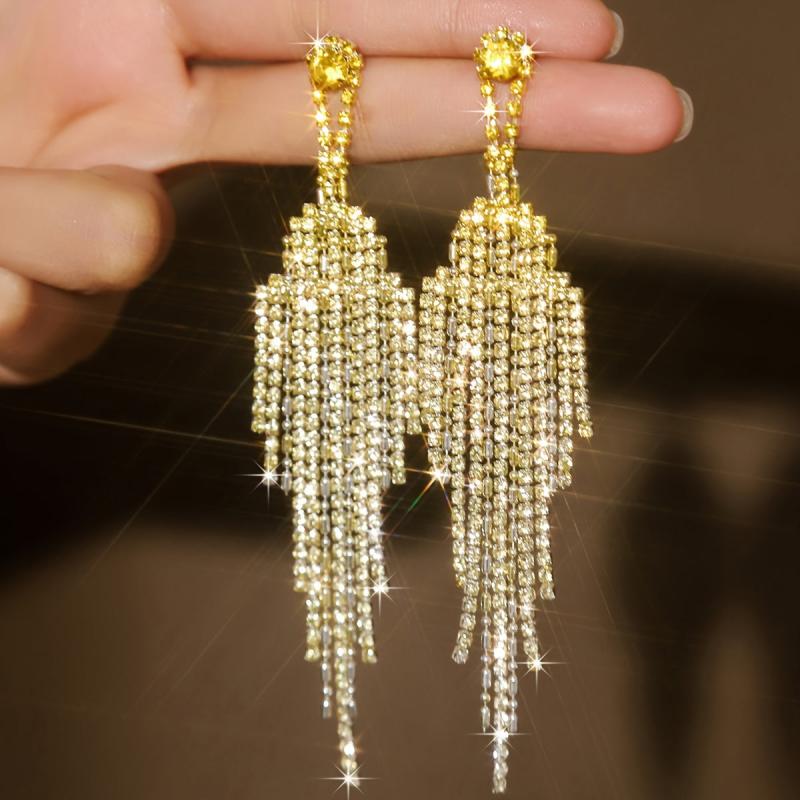 Make a statement at weddings and parties with these elegant chandelier tassel earrings. Sparkling rhinestones add a touch of glam to your outfit all season long.
