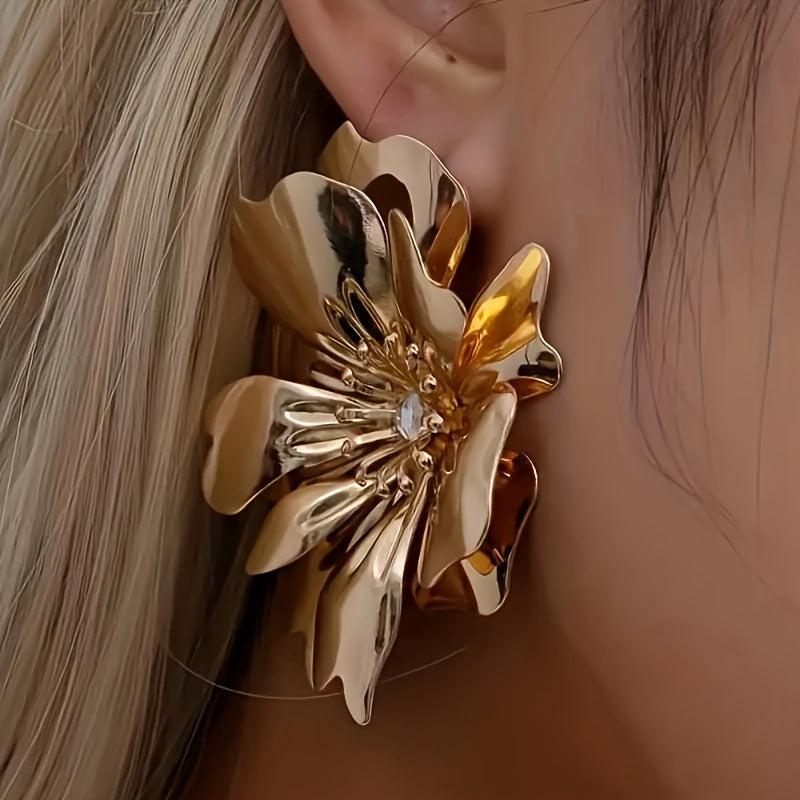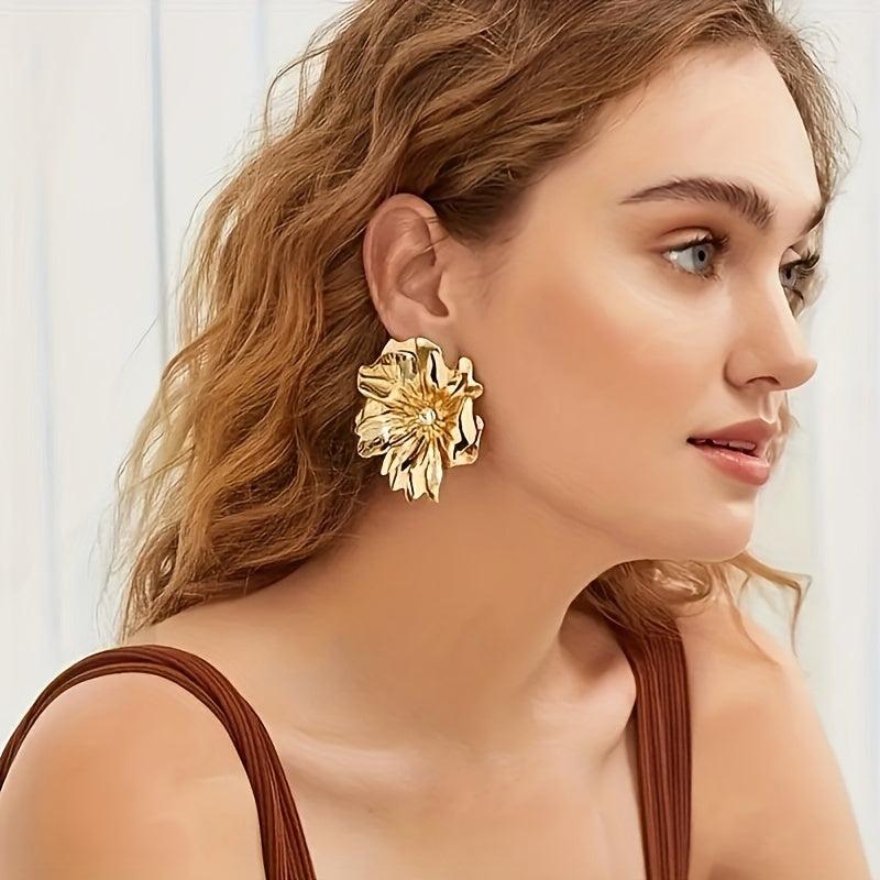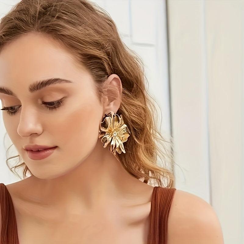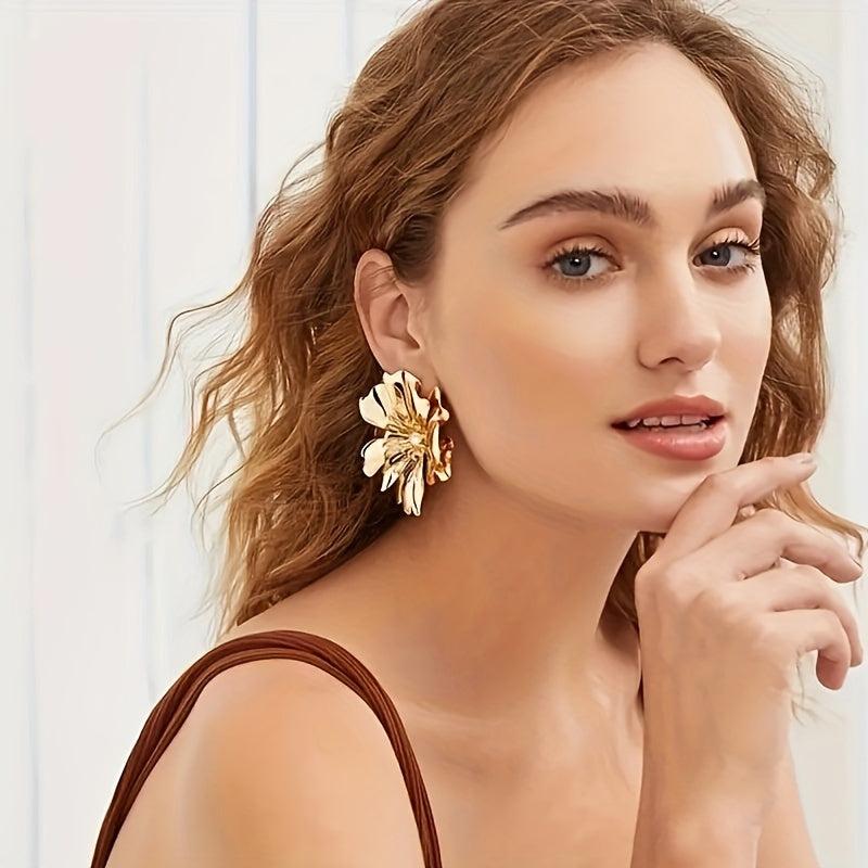 Add a touch of glamour to your outfit with these stunning flower metal stud earrings. Perfect for parties, banquets, or everyday wear.