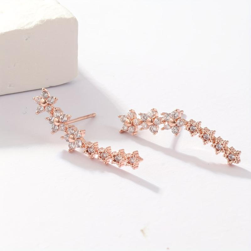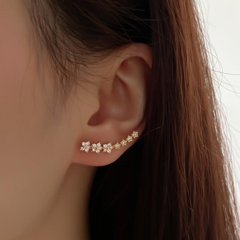 Elevate your look with these stylish flower and star single row earrings. Perfect for adding a touch of glamour to any outfit.
