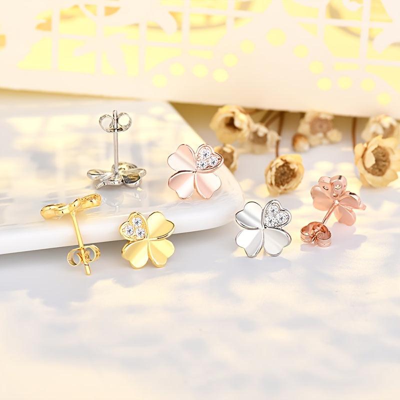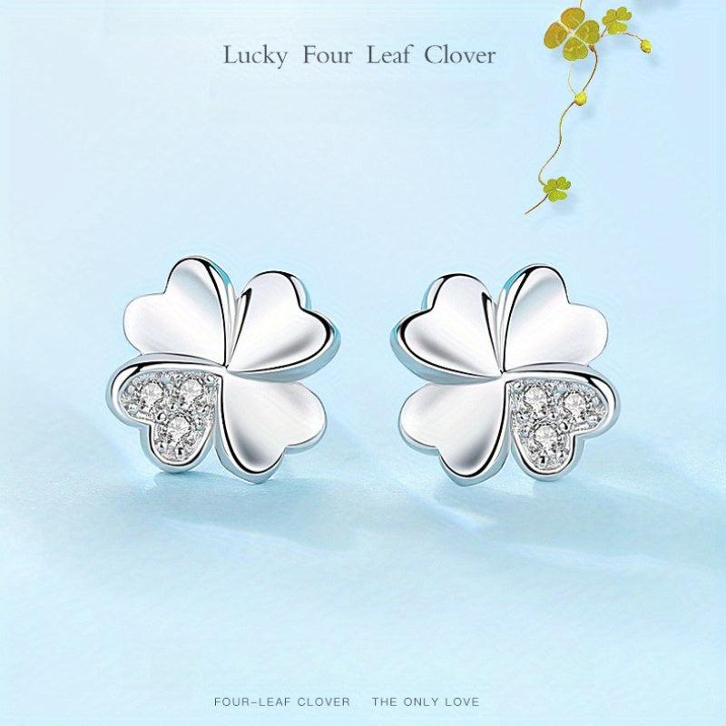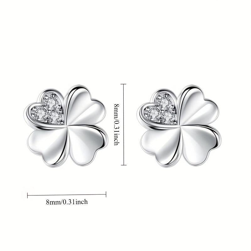 Enhance your style with these elegant silvery ear studs and earrings featuring a lucky four leaf clover design.