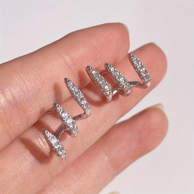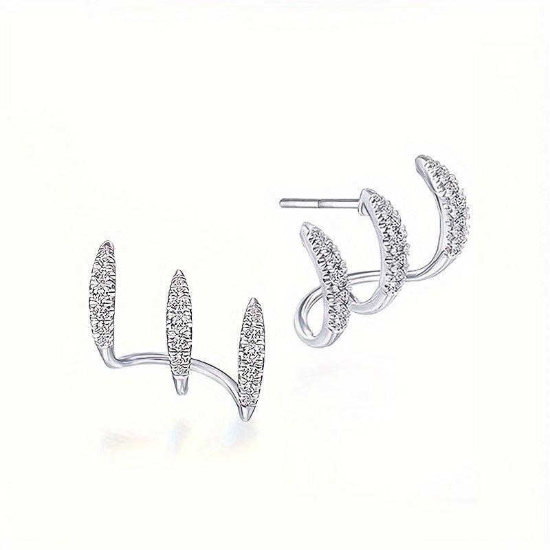 These elegant French style curved claw stud earrings are made of zinc alloy and feature rhinestone inlay. Versatile for daily wear and party occasions.