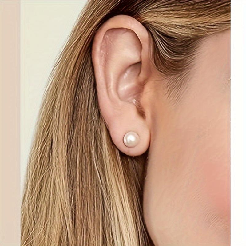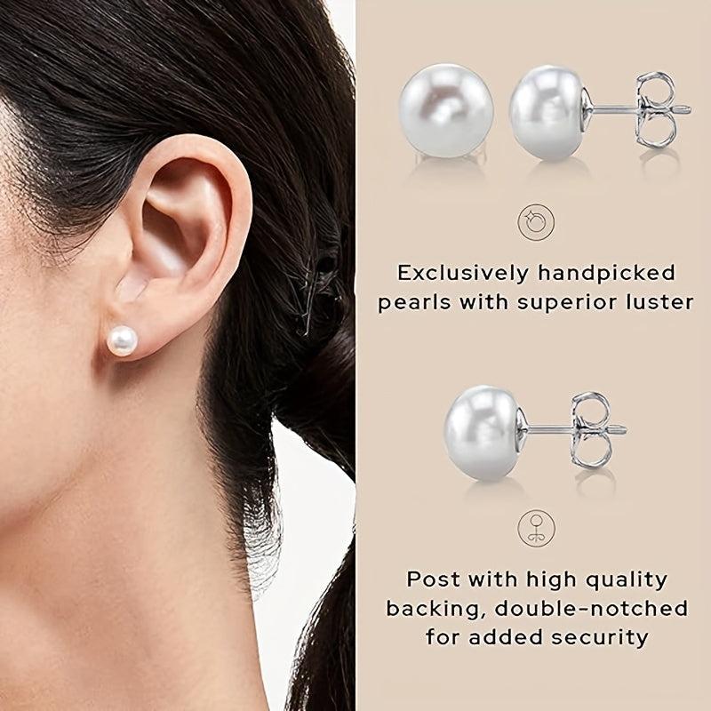 Elegant and minimalist freshwater pearl earrings with two 8-9mm pearls on S925 silver ear pins. Perfect for everyday wear or as a thoughtful gift.