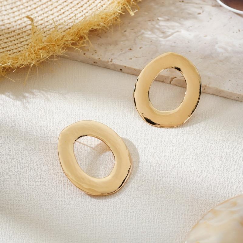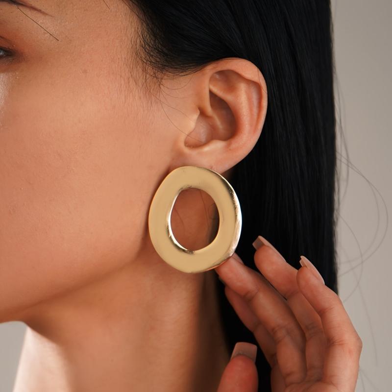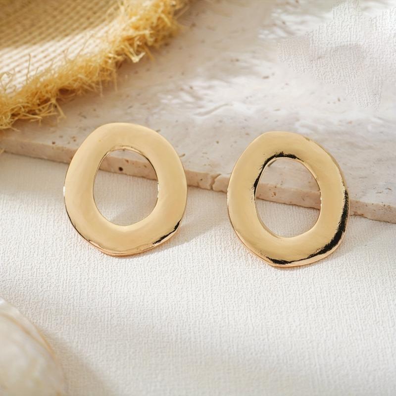 These minimalist earrings feature an asymmetrical geometric circle design, made from zinc alloy and iron. Suitable for everyday wear or parties, these versatile earrings are a stylish accessory year-round.
