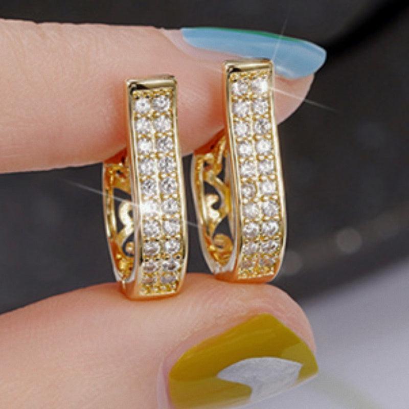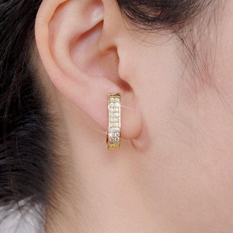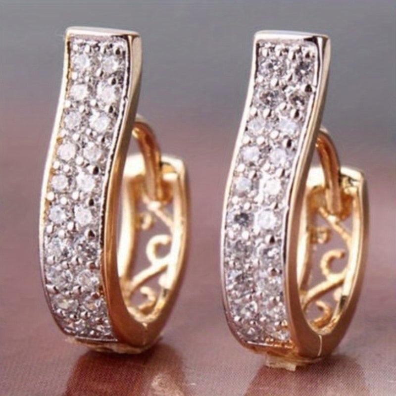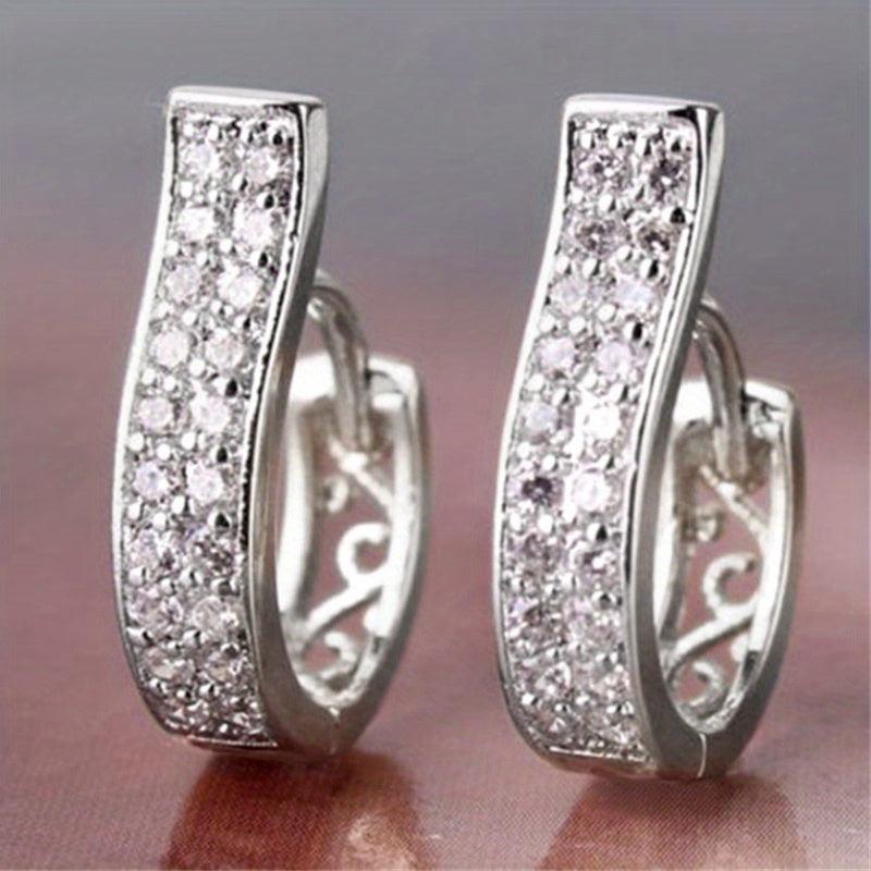 Add a touch of sparkle to your everyday look with these stylish hoop earrings featuring synthetic zirconia studs. Perfect for weddings, banquets, or casual wear.