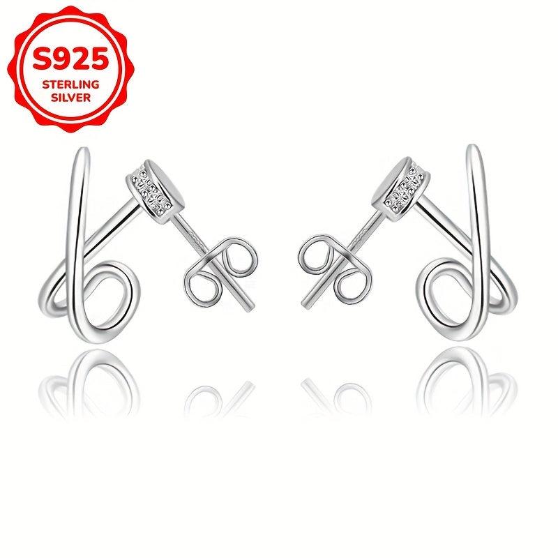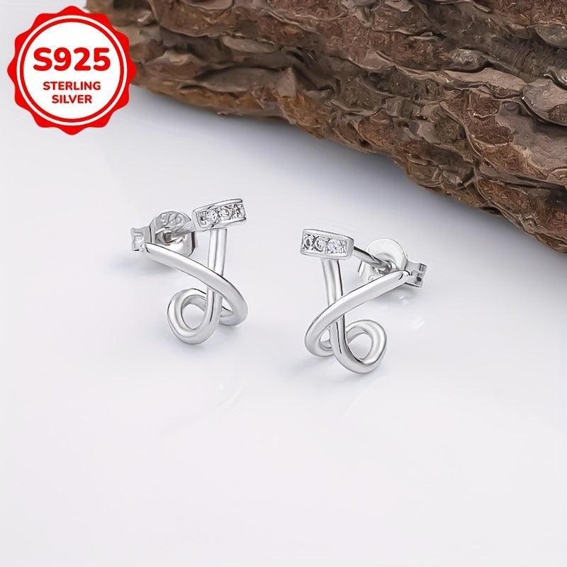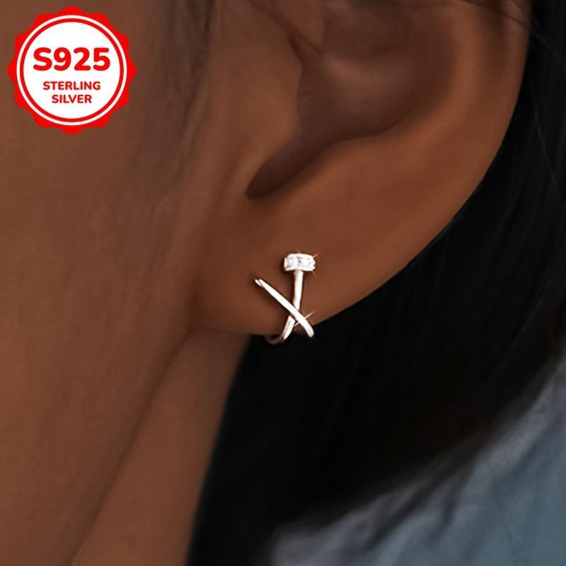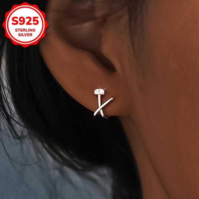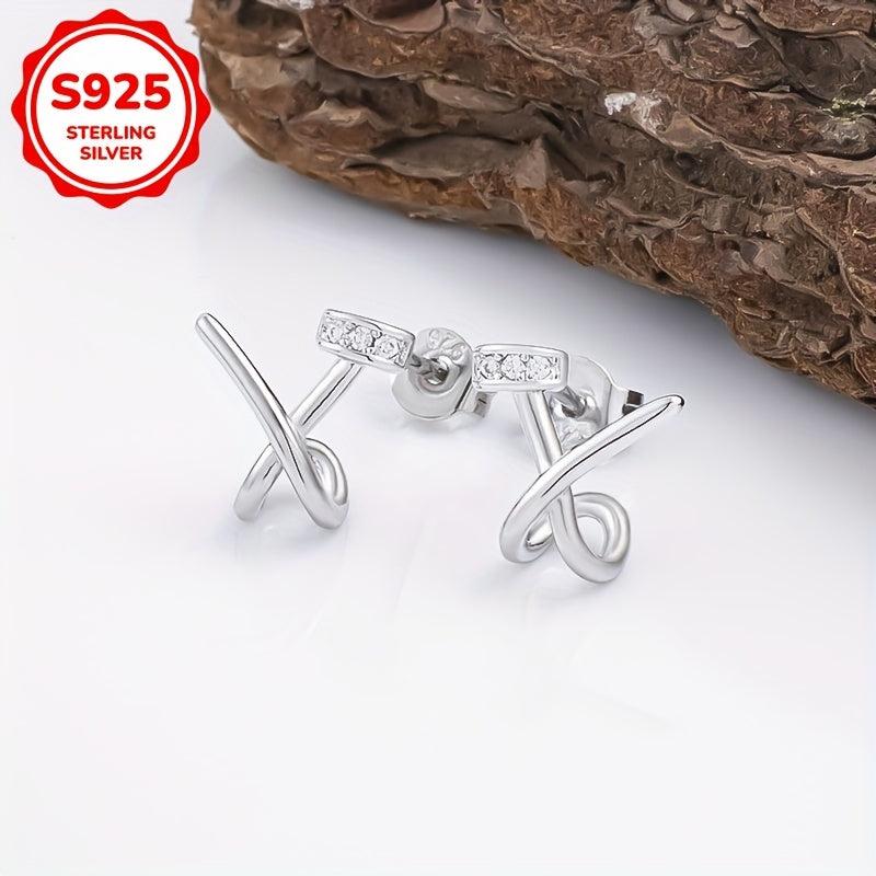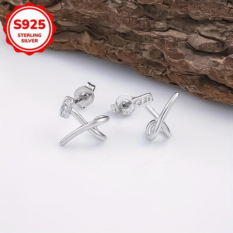 Shine bright with these creative geometric cross stud earrings featuring synthetic zirconia inlays. Made of 925 silver, these earrings are lightweight at 1.5g, perfect for daily wear or holiday parties.