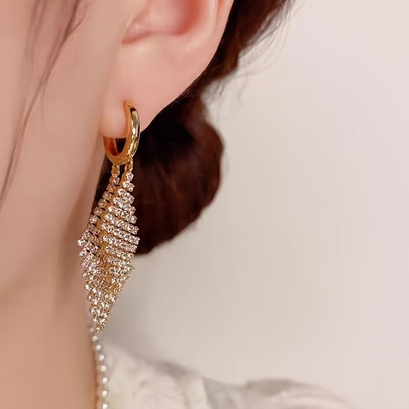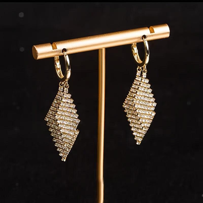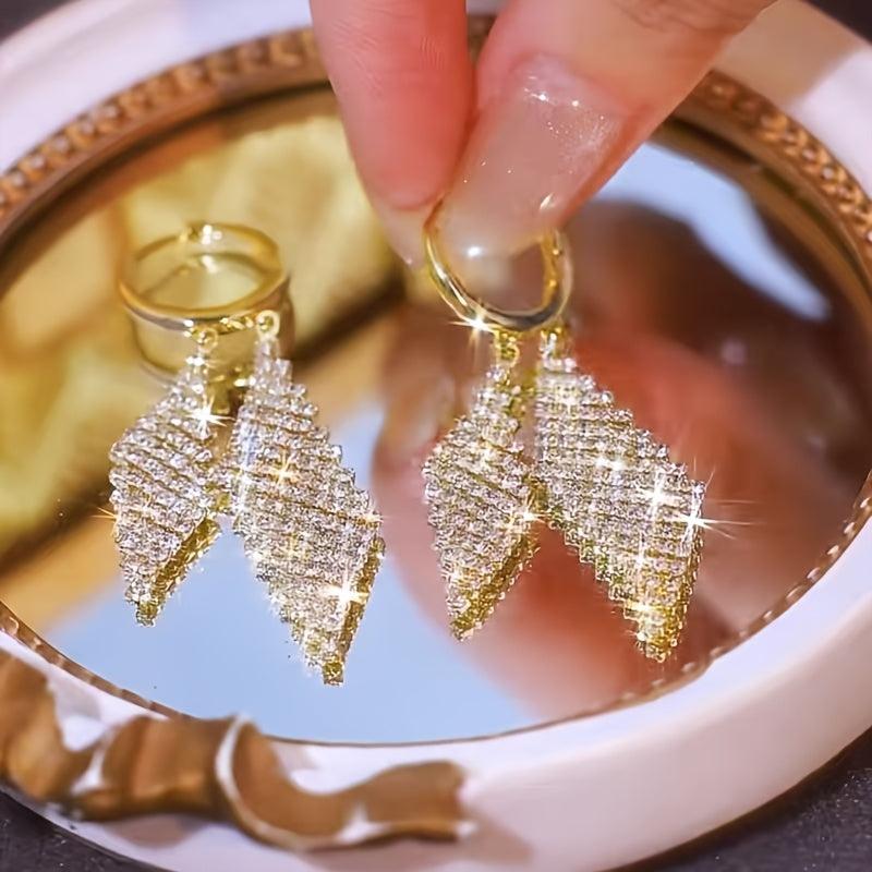 Stay in style with these versatile and unique double diamond shaped ear clips that add a sparkling touch to any outfit.