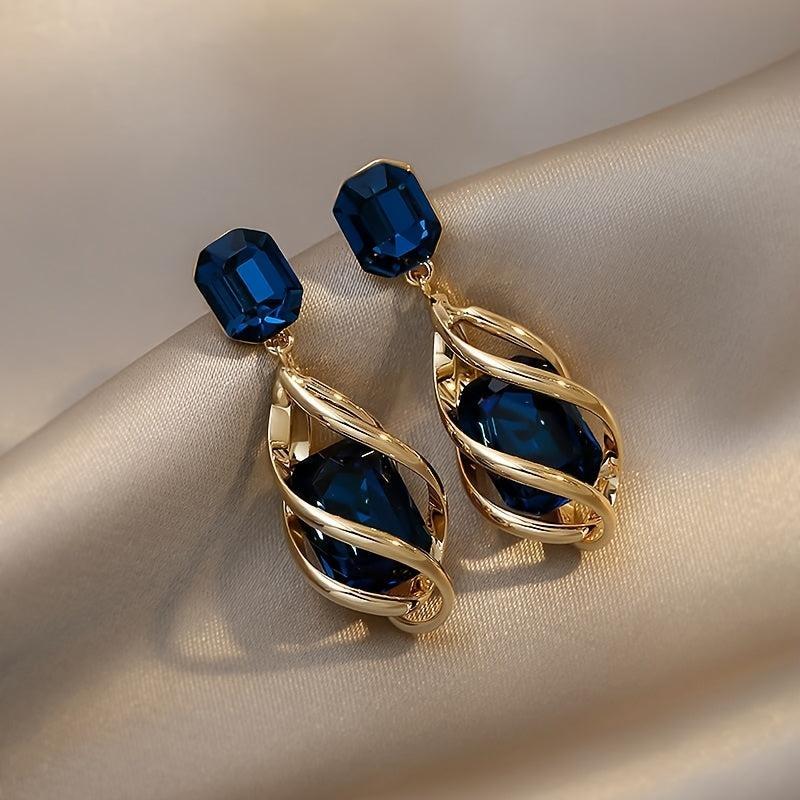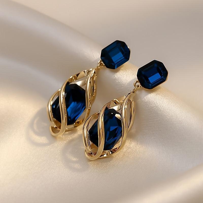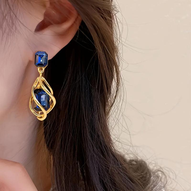 Vintage inspired earrings featuring intricate geometric design with glass accents and rose golden metalwork. Perfect for parties, daily wear, and Valentine's Day.