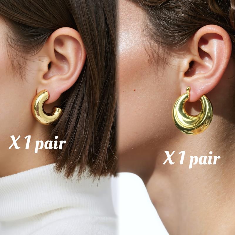 Upgrade your earring game with this stylish set of half circle hoop earrings. Light texture and multiple colors available.