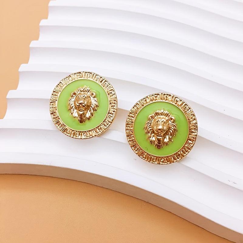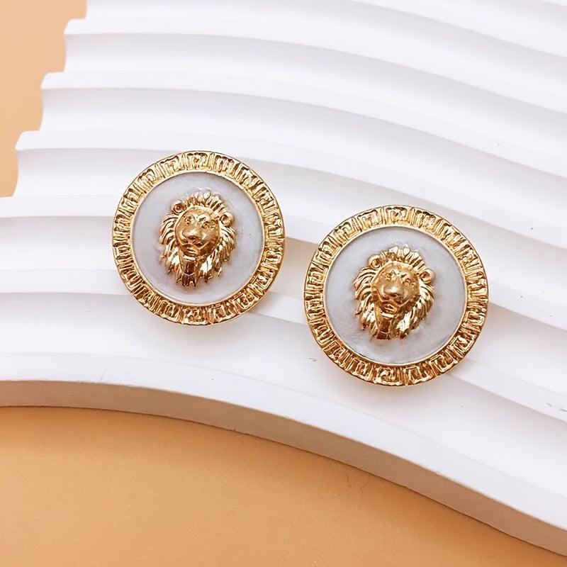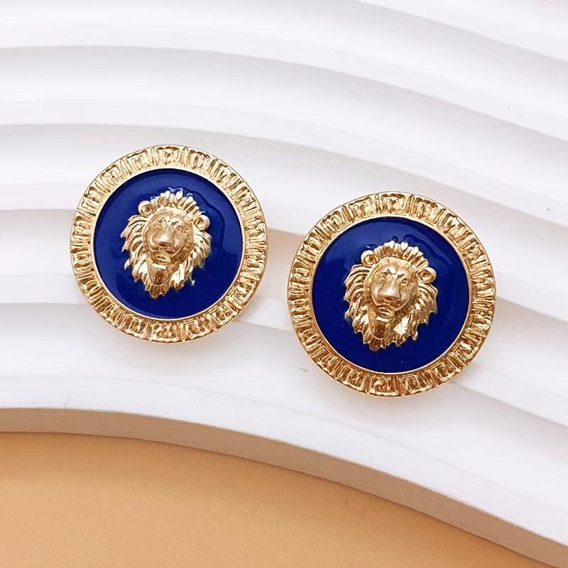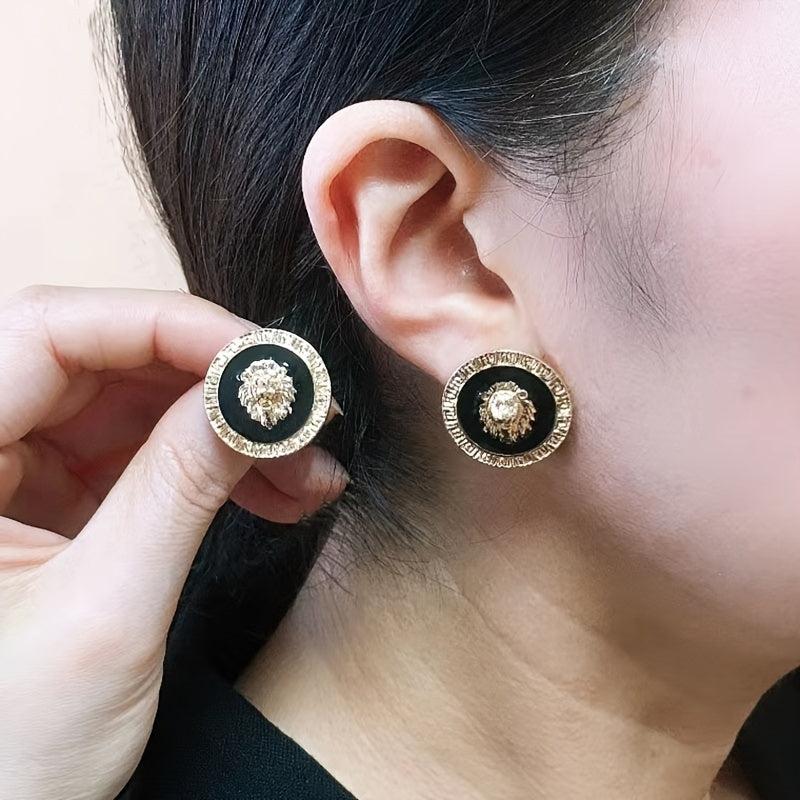 These vintage geometric lion head stud earrings are made of zinc alloy with stainless steel posts, perfect for both daily wear and parties.