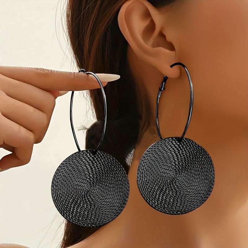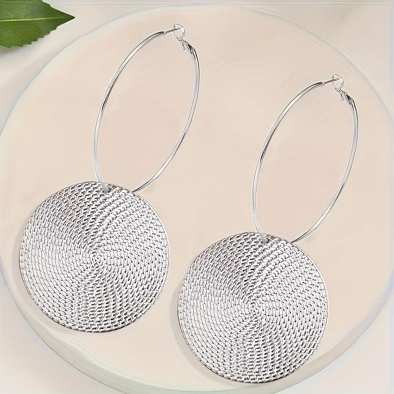 These stylish hoop earrings feature a creative geometric spiral pattern on round discs, perfect for adding a touch of flair to your everyday street style. They make a great gift for any season.