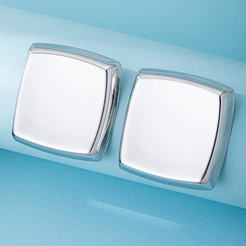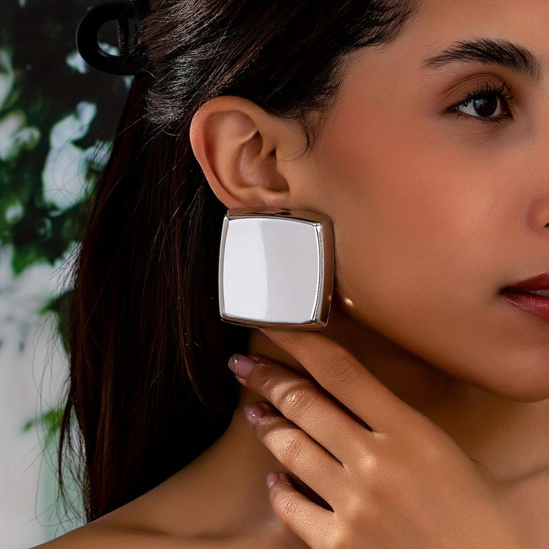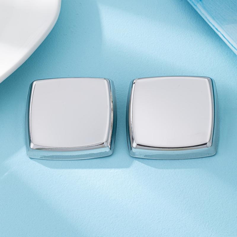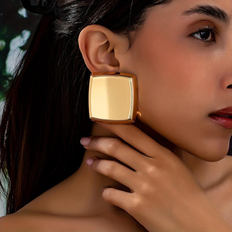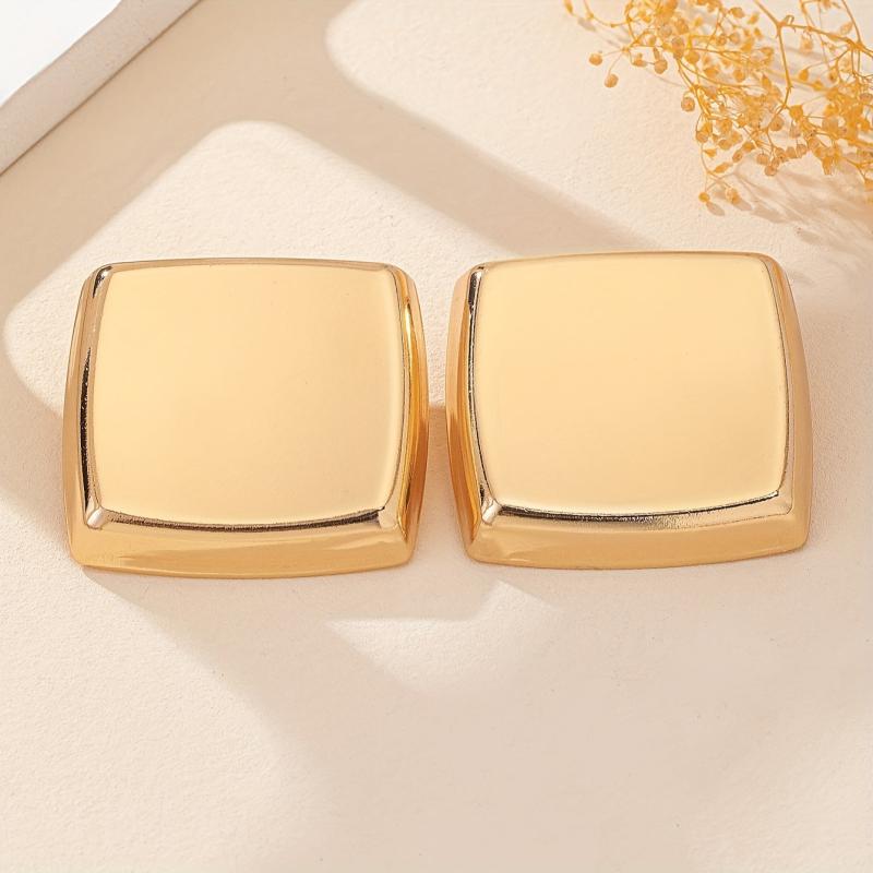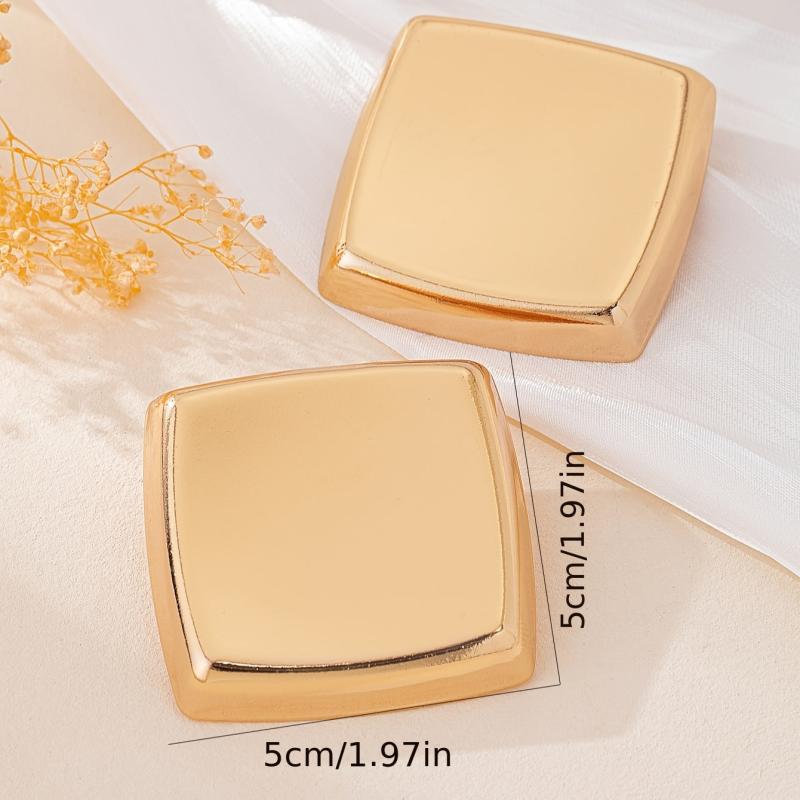 These bold geometric square stud earrings feature a smooth glossy golden tone metal. They are versatile accessories suitable for daily wear and parties year-round.