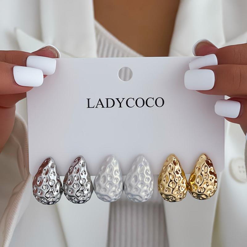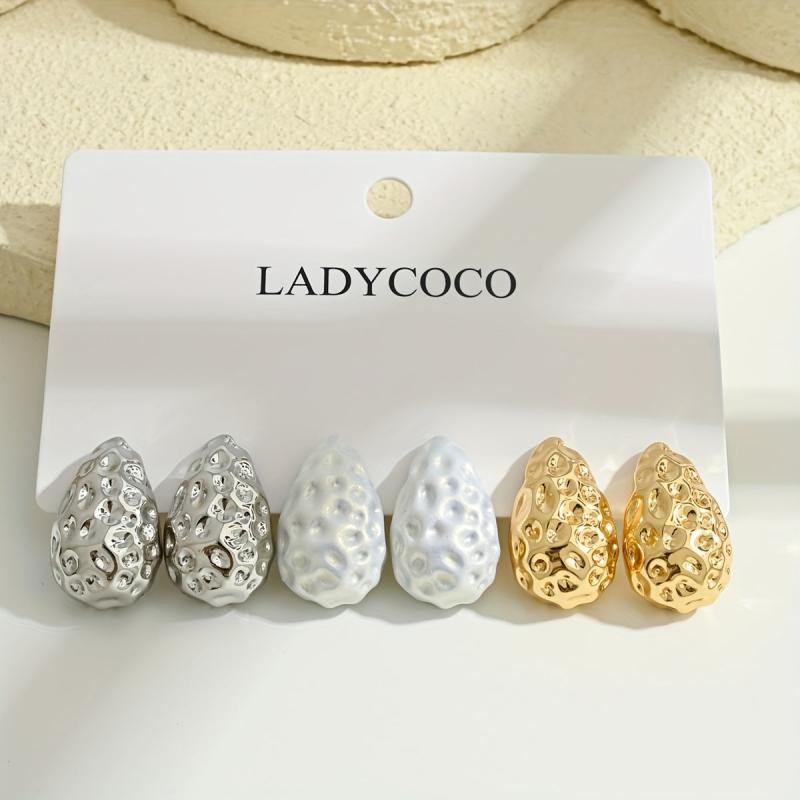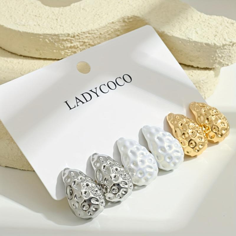 These 6pcs fashionable earrings feature a geometric water drop design, made with hypoallergenic 316 stainless steel needle. Perfect for daily wear.