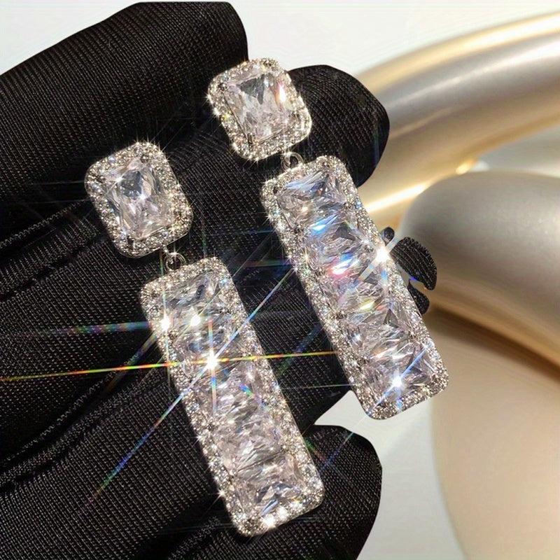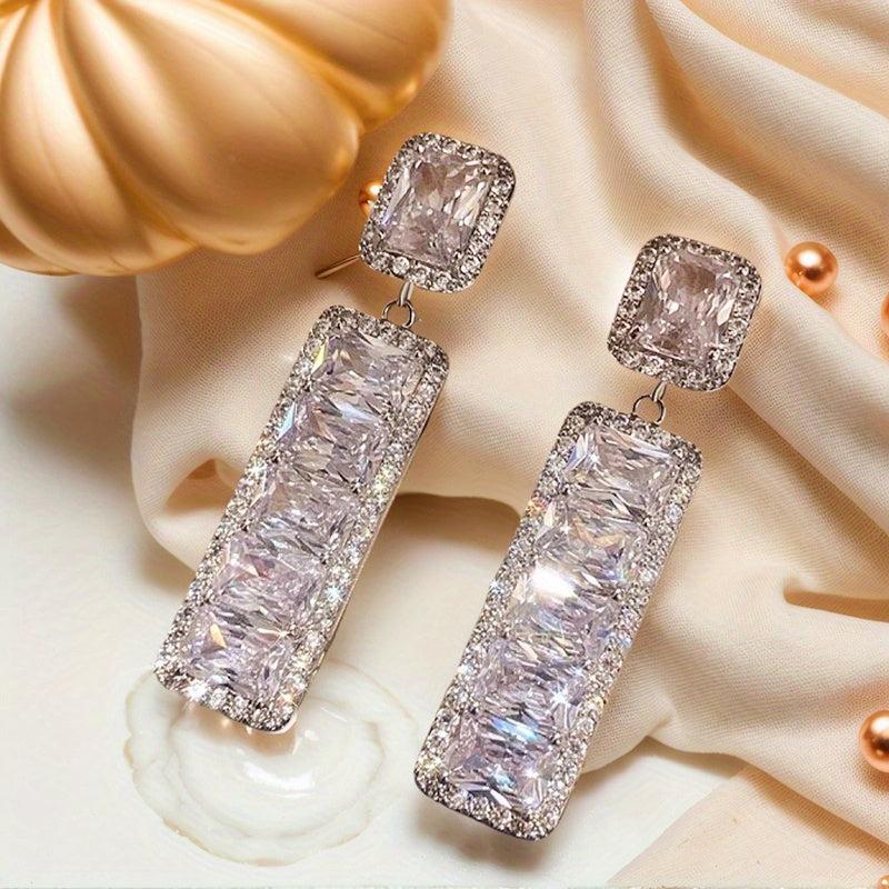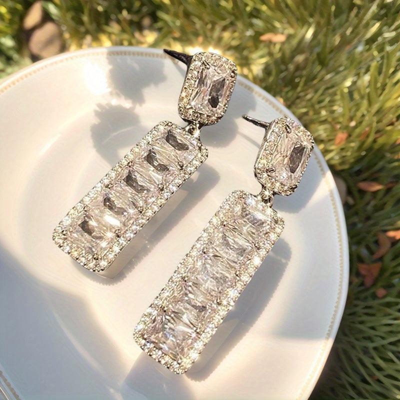 Enhance your outfit with these stylish drop earrings featuring inlaid synthetic zirconia. Perfect for ladies' wedding banquet party accessories.
