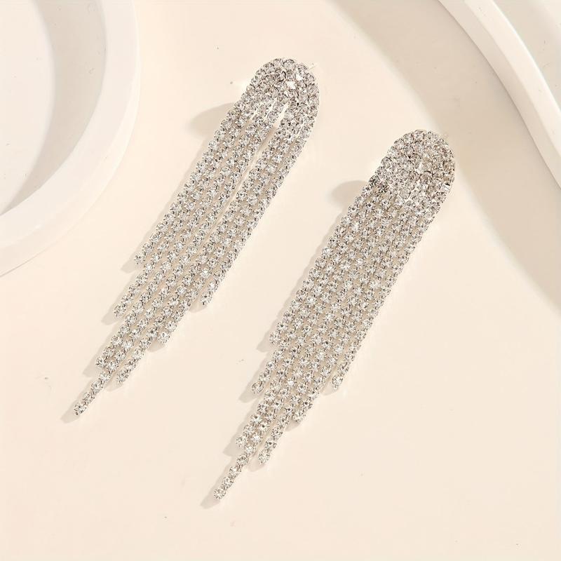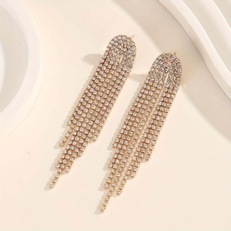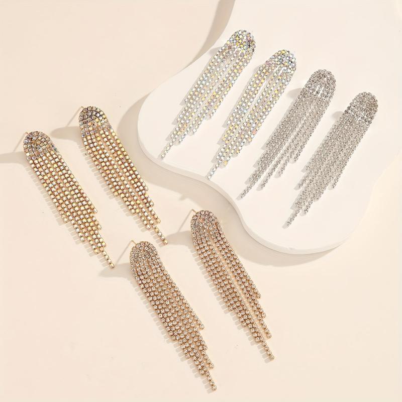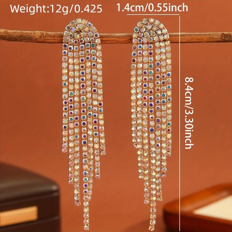 These glamorous rhinestone tassel dangle earrings are perfect for adding a touch of elegance and sophistication to your look. Ideal for banquets, parties, and special occasions.