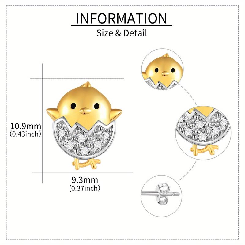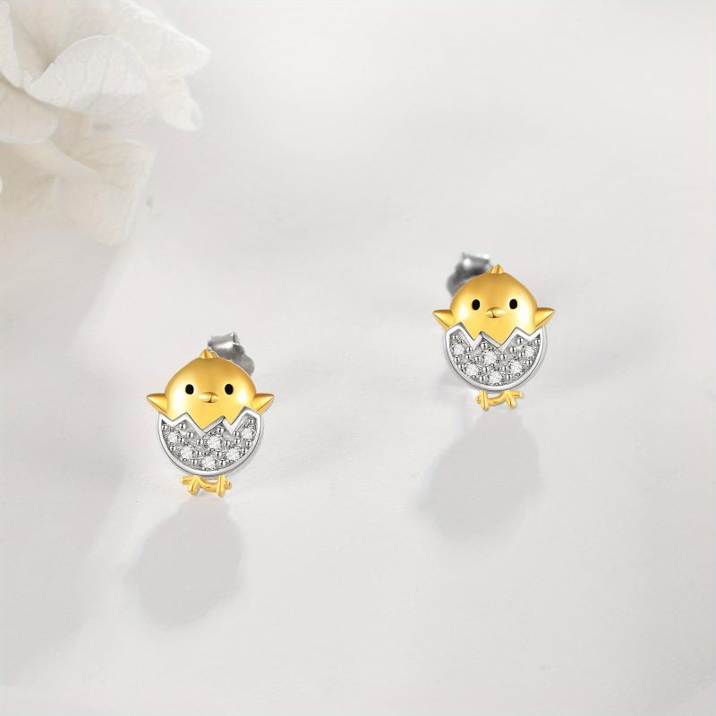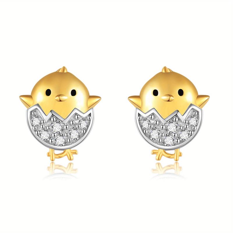 Golden Chicken Stud Earrings for Women - Sterling Silver Chicken Jewelry