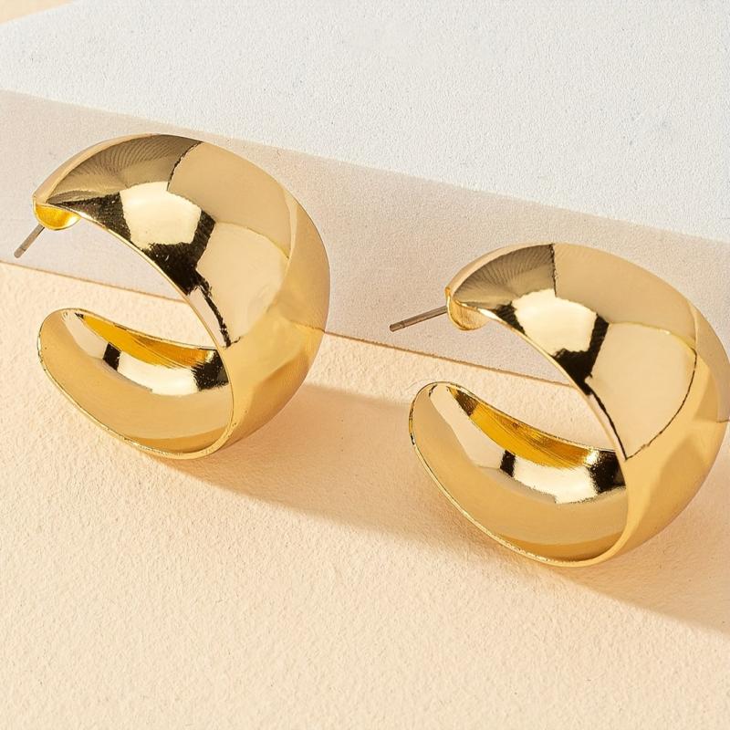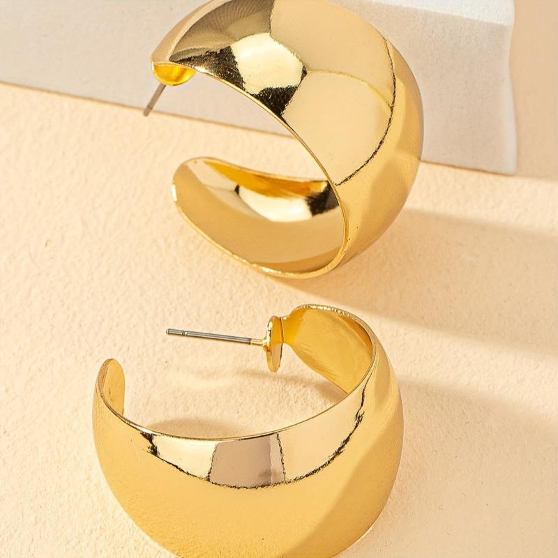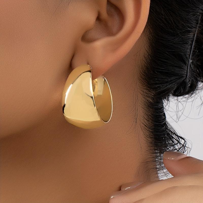 Add a touch of glamour to any outfit with these golden chunky glossy hoop earrings. They are the perfect accessory for any occasion and make a great gift for a loved one.