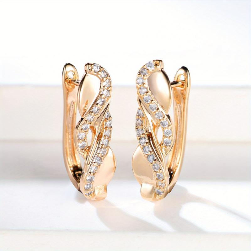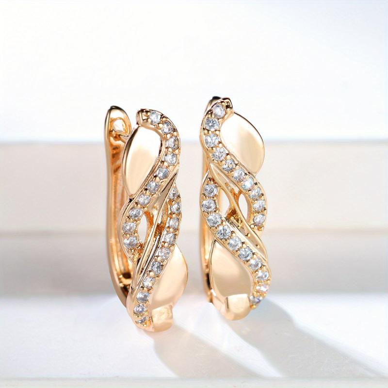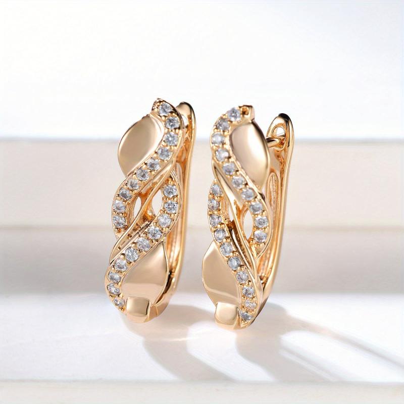 These exquisite golden earrings are perfect for brides and weddings. They feature high-quality CZ zirconia stones for a luxurious look.