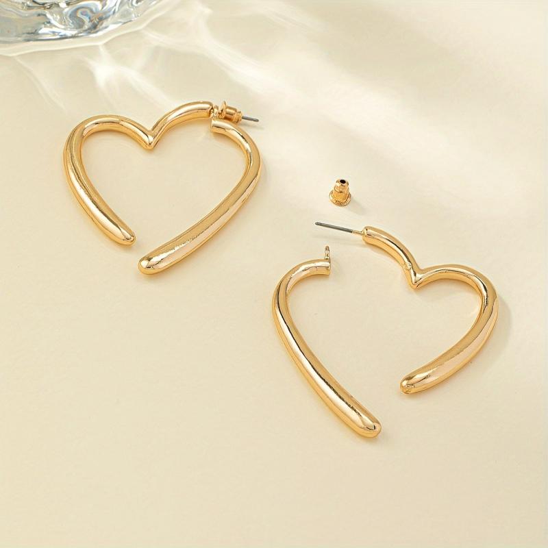 Add a touch of glamour with these sexy golden tone heart hoop earrings, perfect for fall season. Iron posts with plastic body for comfortable wear.