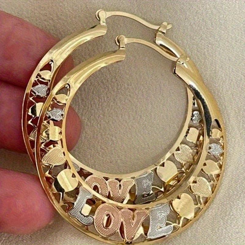 Add a touch of vintage elegance to your outfit with these round golden plated heart hoop earrings, perfect for weddings, anniversaries, and parties.