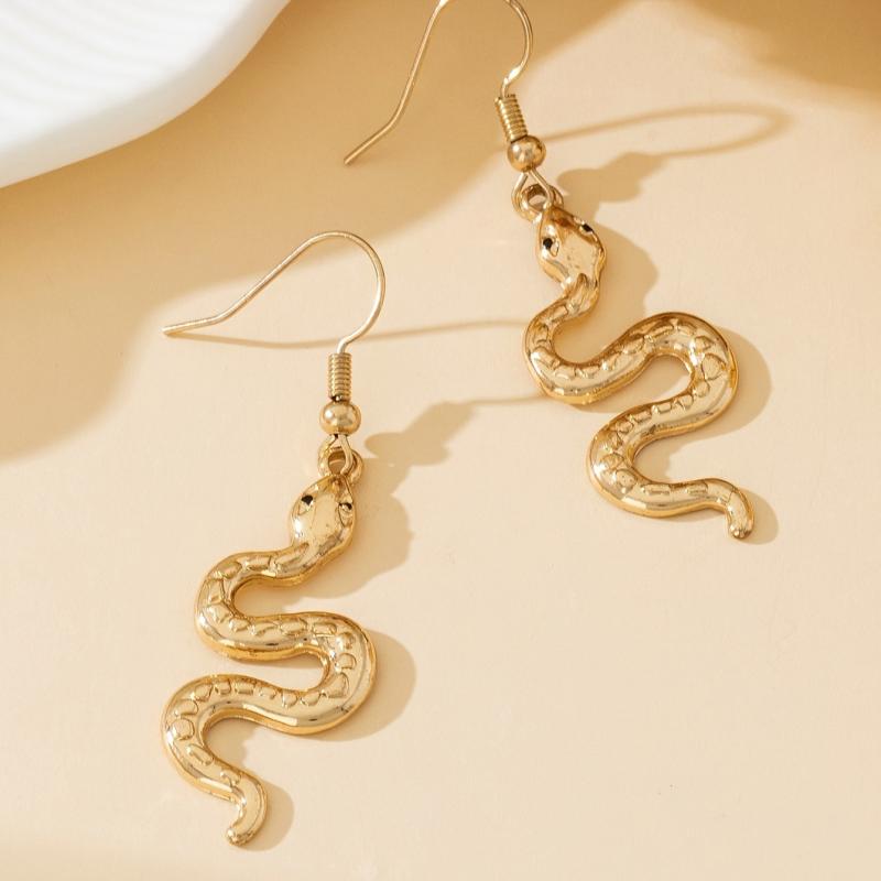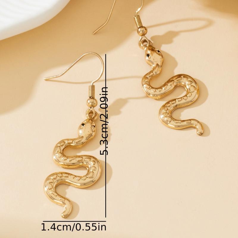Make a striking statement with these bohemian-style golden snake drop earrings featuring sparkling gemstone details. Perfect for parties, weddings, and casual attire.