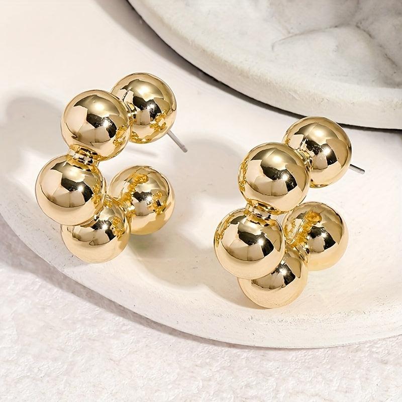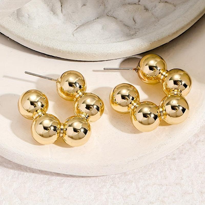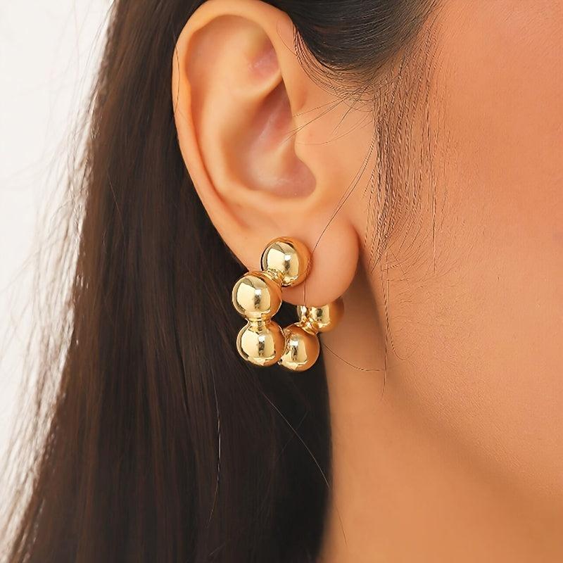 Add a touch of elegance to your outfit with these stylish hoop earrings featuring a golden tone ball design. Suitable for daily wear or parties, these earrings are a versatile accessory that you'll love.