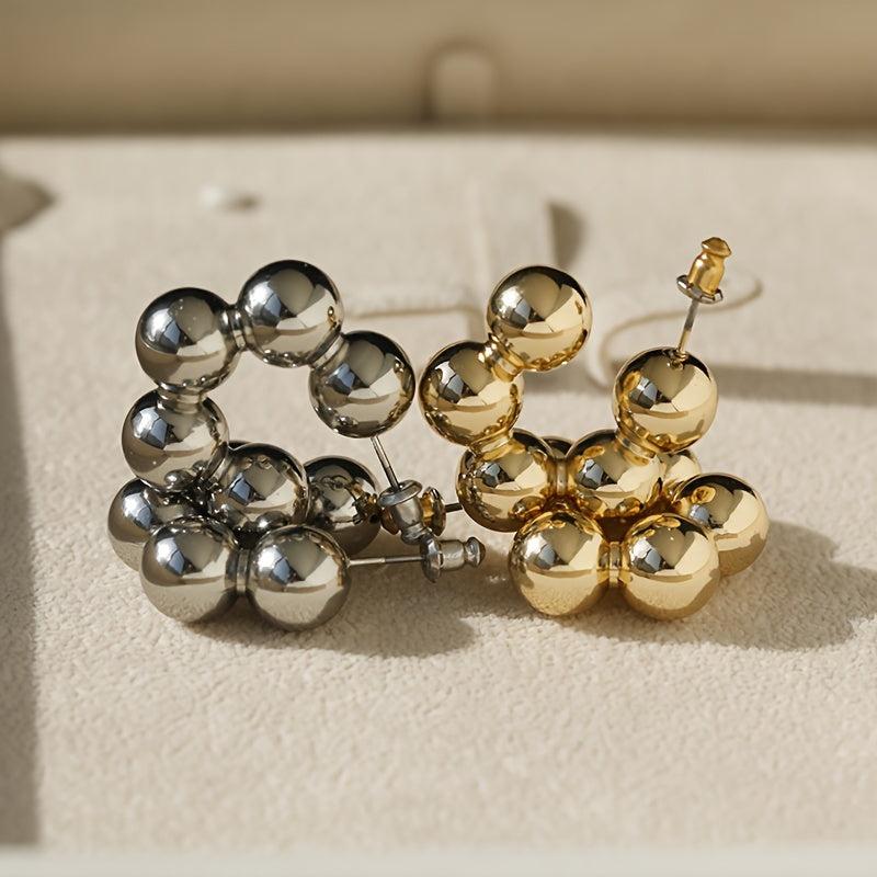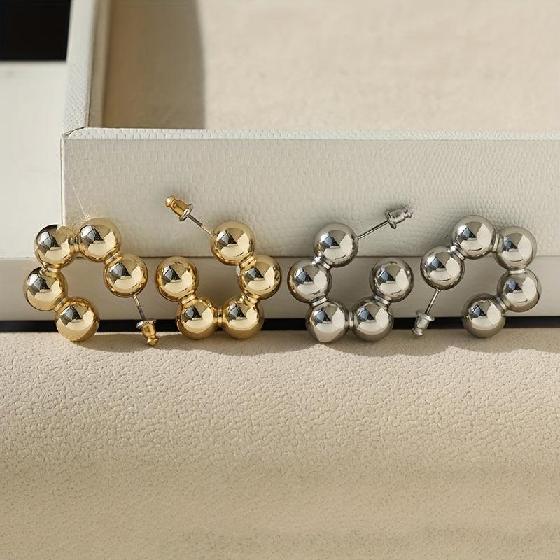 Golden Tone Ball C Hoop Earrings for Women - Stainless Steel Posts