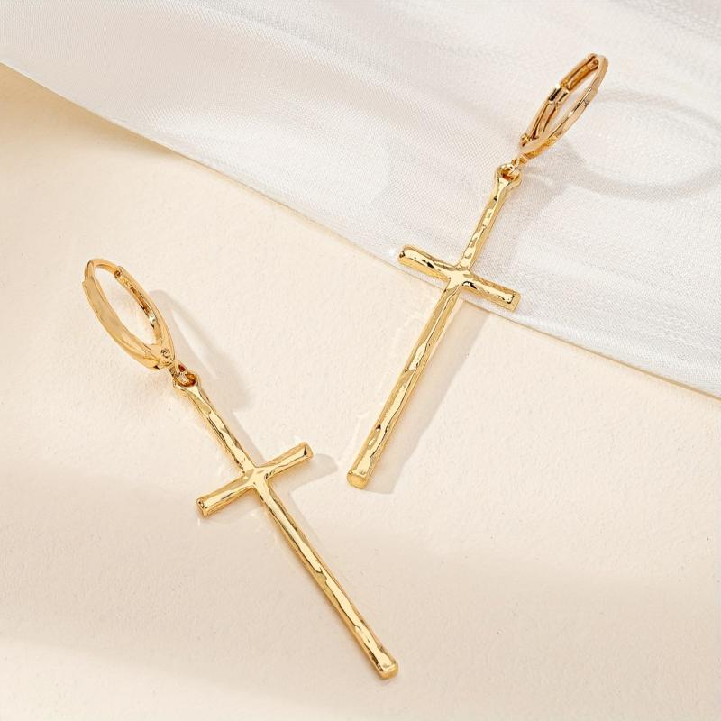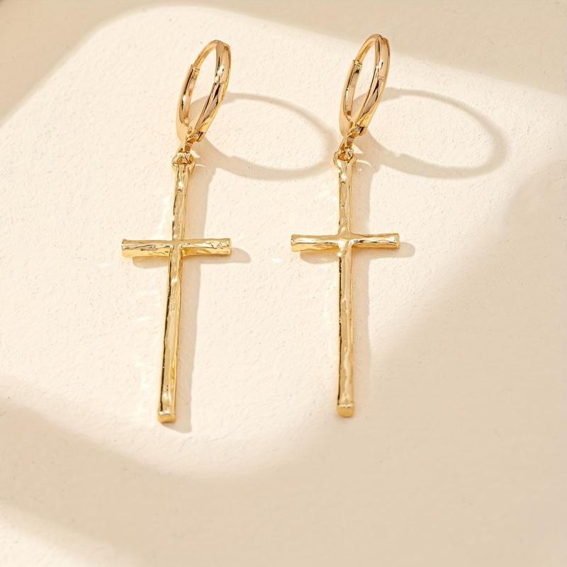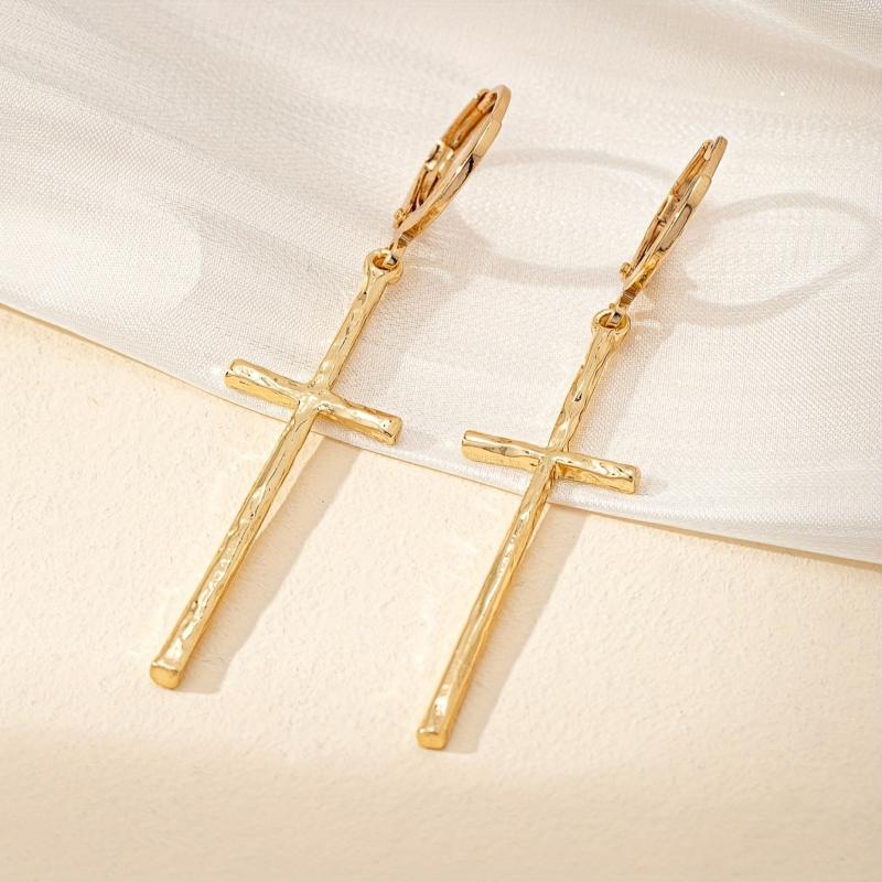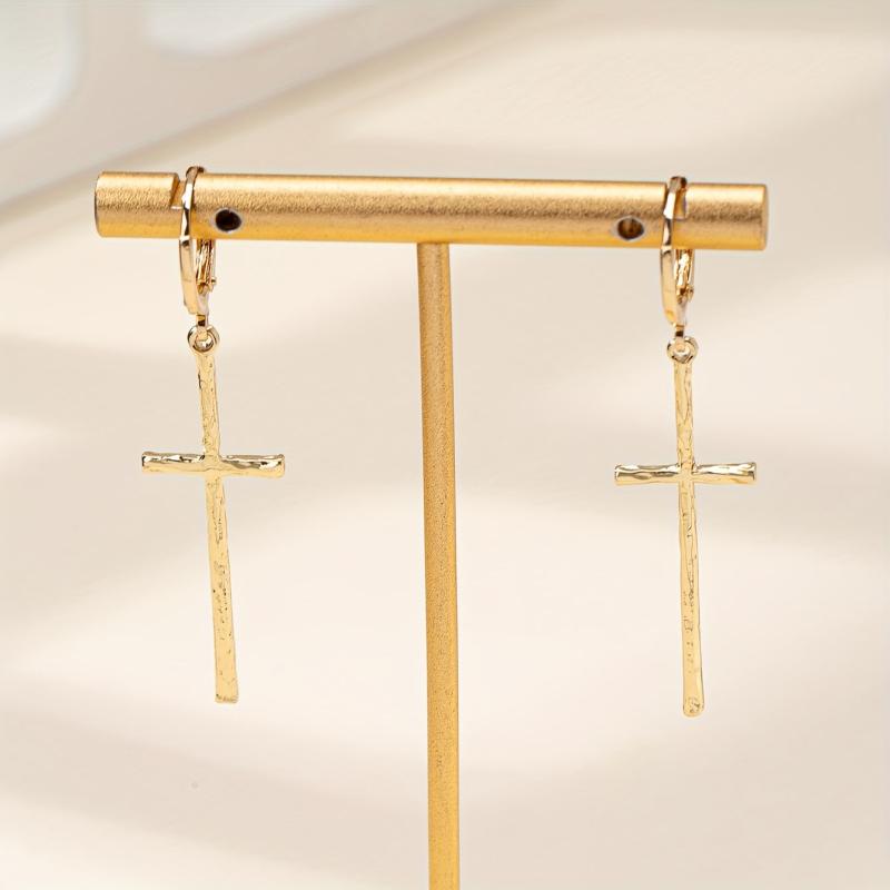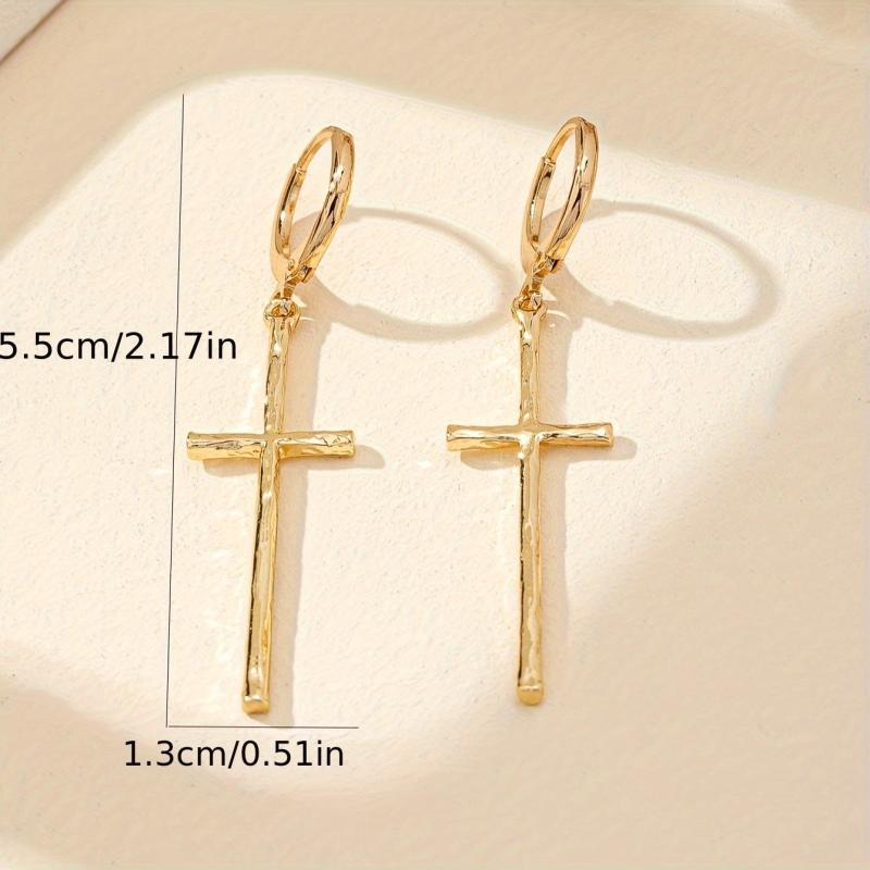Add a touch of elegance to your everyday look with these stylish cross dangle earrings. Made from hypoallergenic iron, these earrings are perfect for sensitive ears.