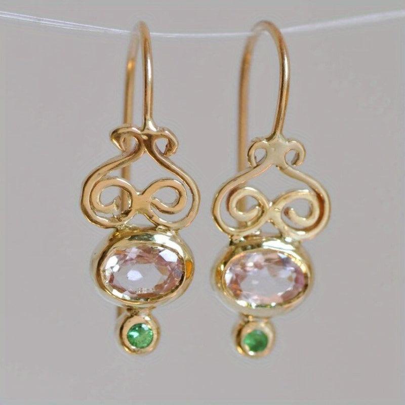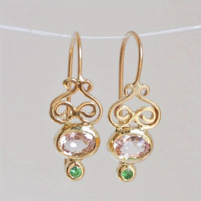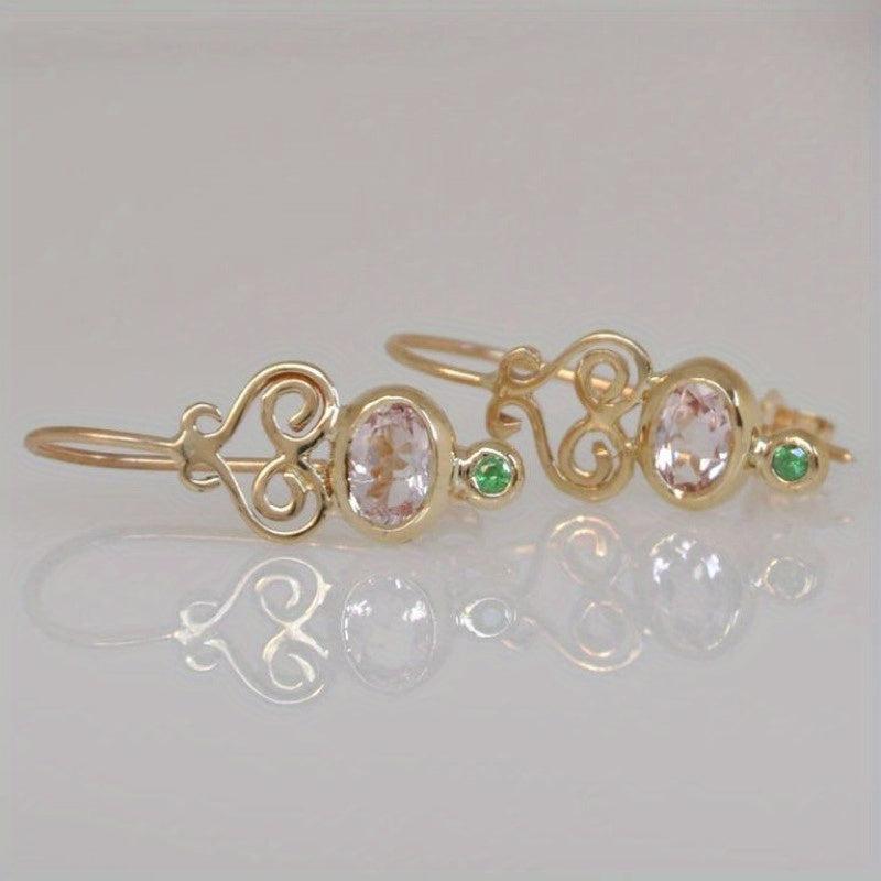 These elegant dangle earrings feature a unique design with sparkling pink and green cubic zirconia stones. Perfect for Valentine's Day or Mother's Day gifts.