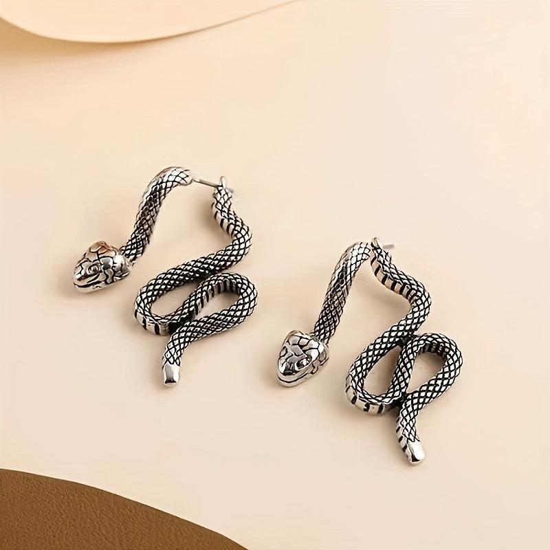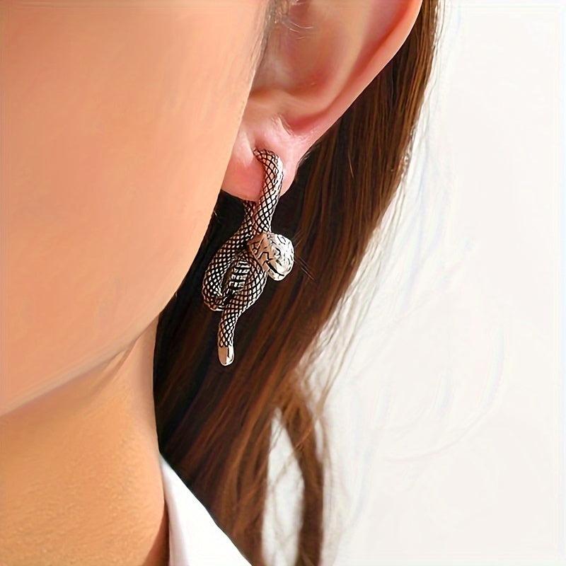 Elevate your style with these detachable front and rear retro punk earrings featuring intricate serpent design. Perfect for daily wear or parties.