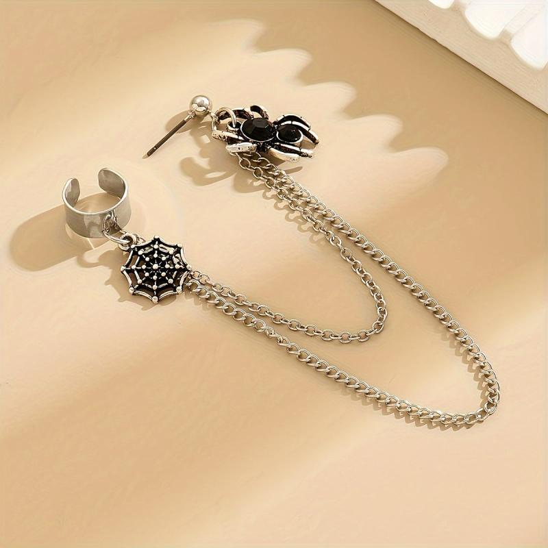 Make a spooky statement with these Gothic Spider Web Chain Earrings perfect for Halloween parties. They are creative ear cuff clip-on jewelry suitable for all seasons and festivities.
