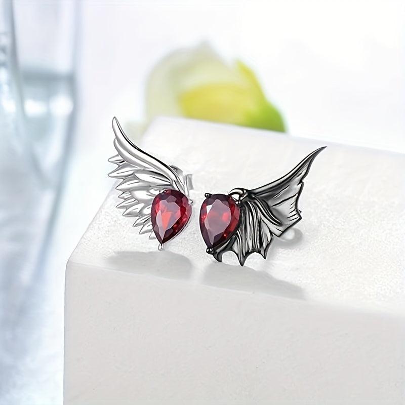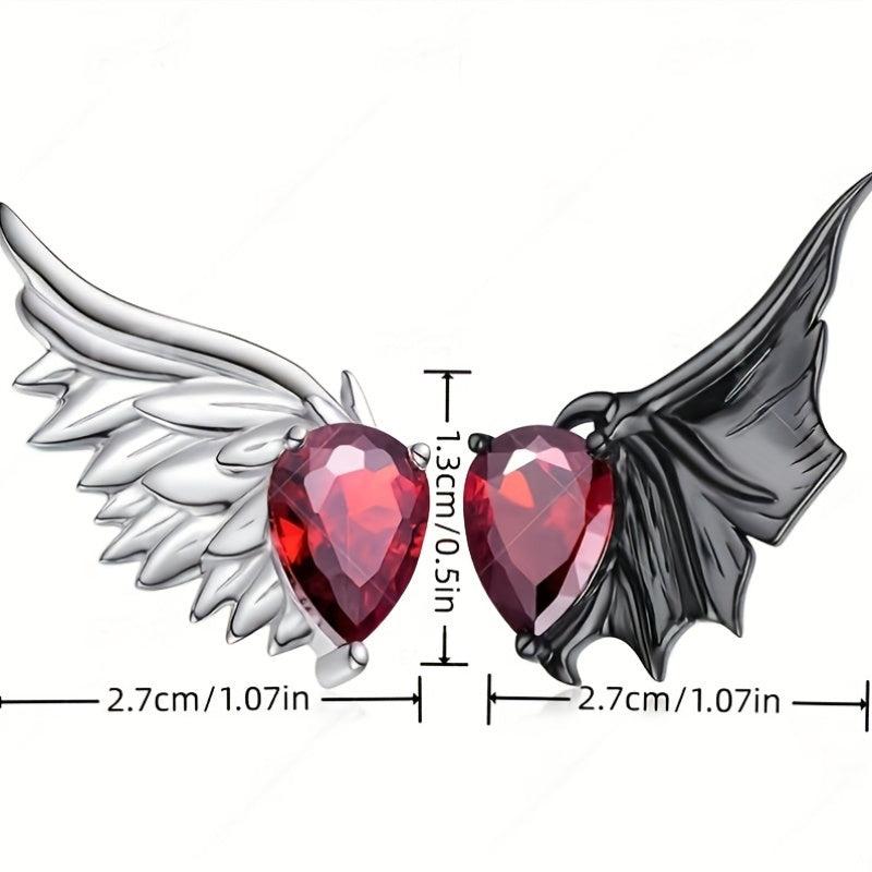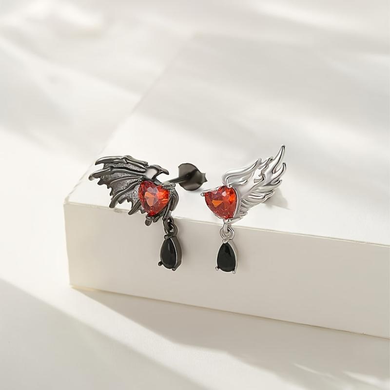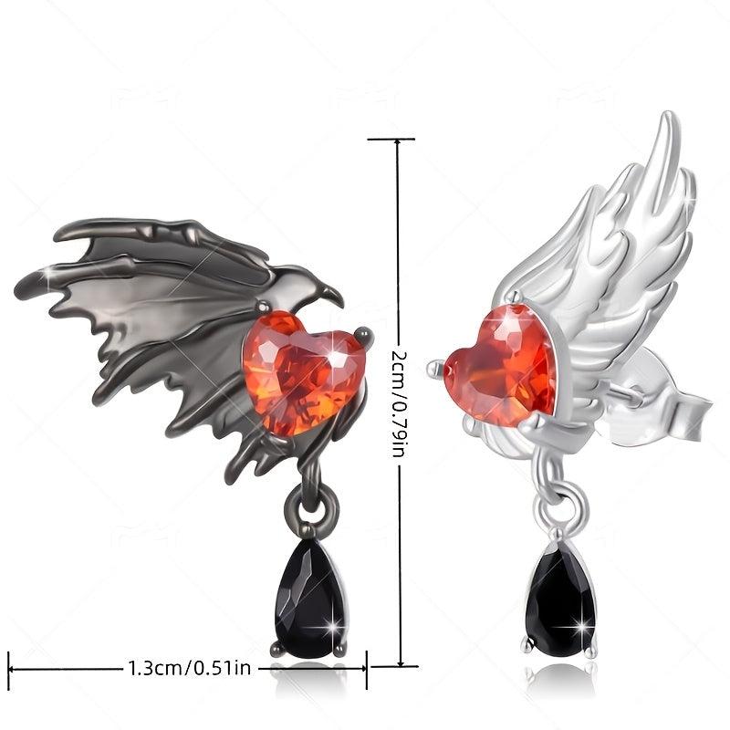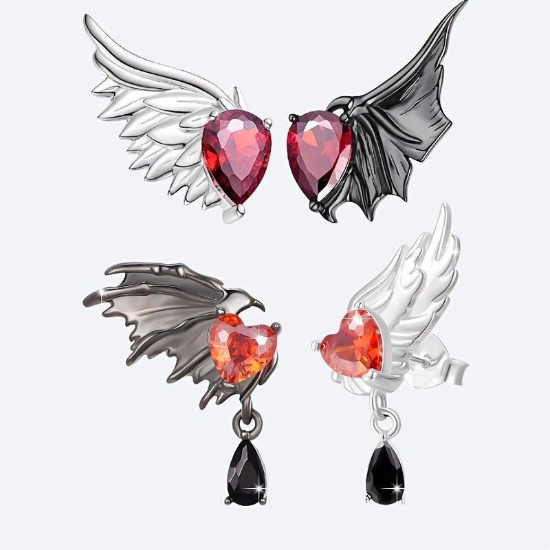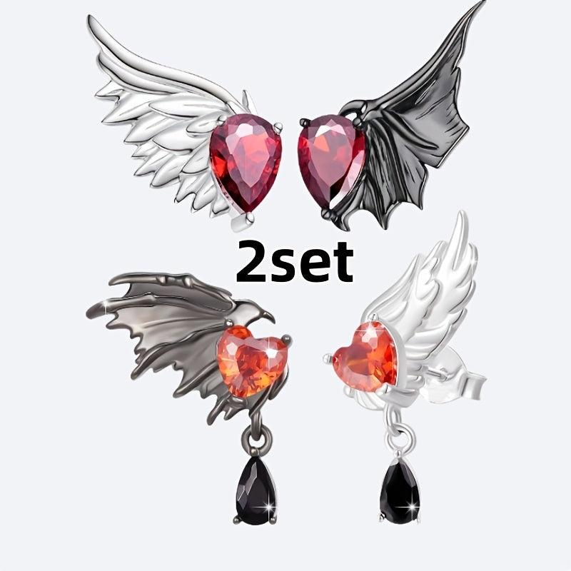 This set includes two pairs of gothic earrings featuring demon wings and asymmetrical designs. Perfect for women, couples, and holiday wear.