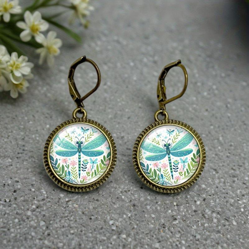 These vintage-inspired green dragonfly and leaf glass earrings are perfect for daily wear. They feature retro style posts and are ideal for adding a unique touch to any outfit.