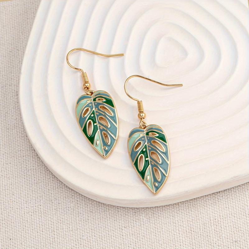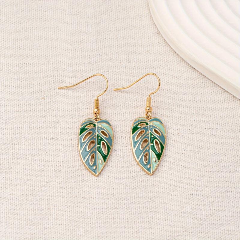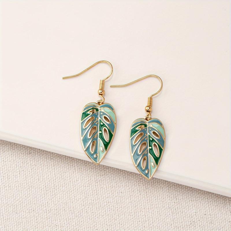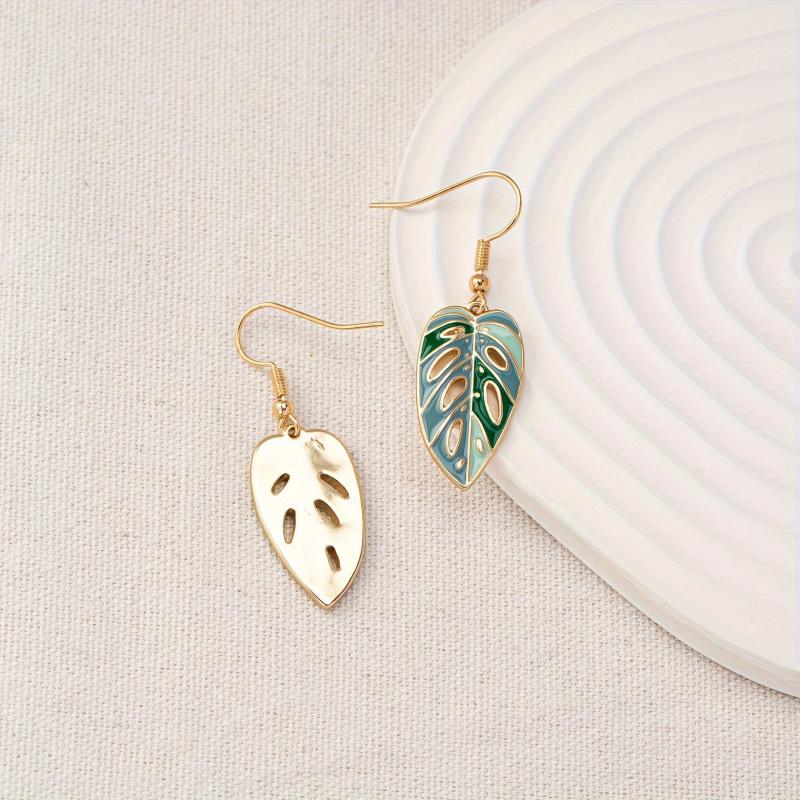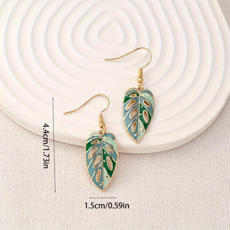 These stylish green enamel leaf drop earrings are perfect for daily wear and gift giving. Made of zinc alloy, they feature a unique hollow out design.