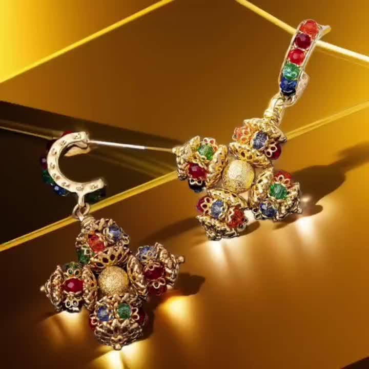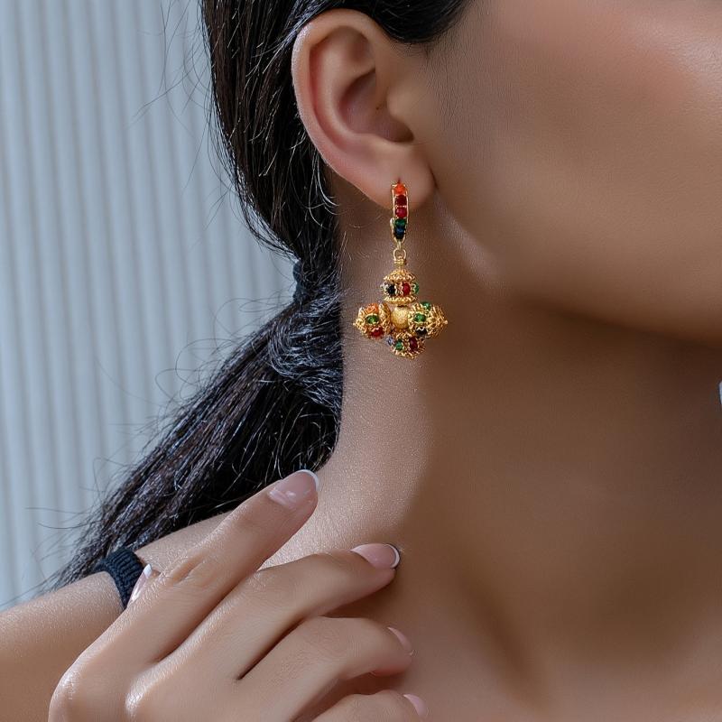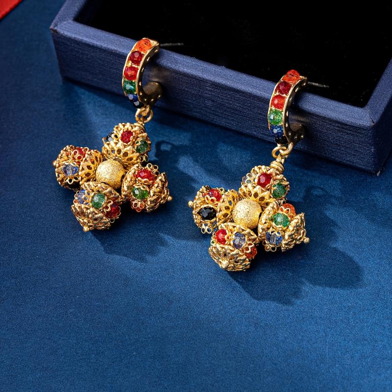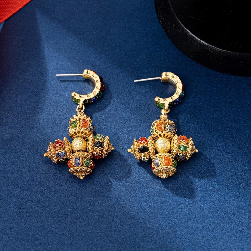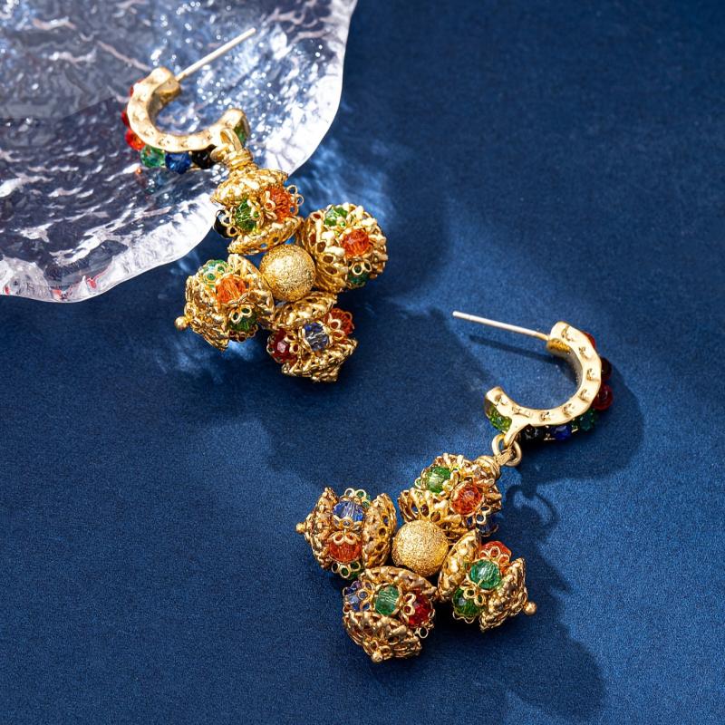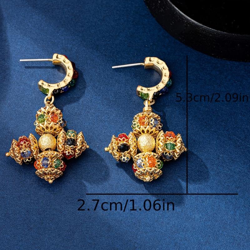 These handcrafted earrings feature an intricate floral design with vibrant multicolor glass beads. Perfect for both casual attire and special occasions, they are made with durable iron ear posts.