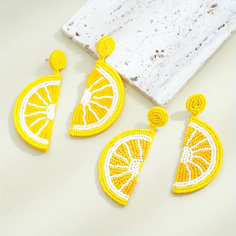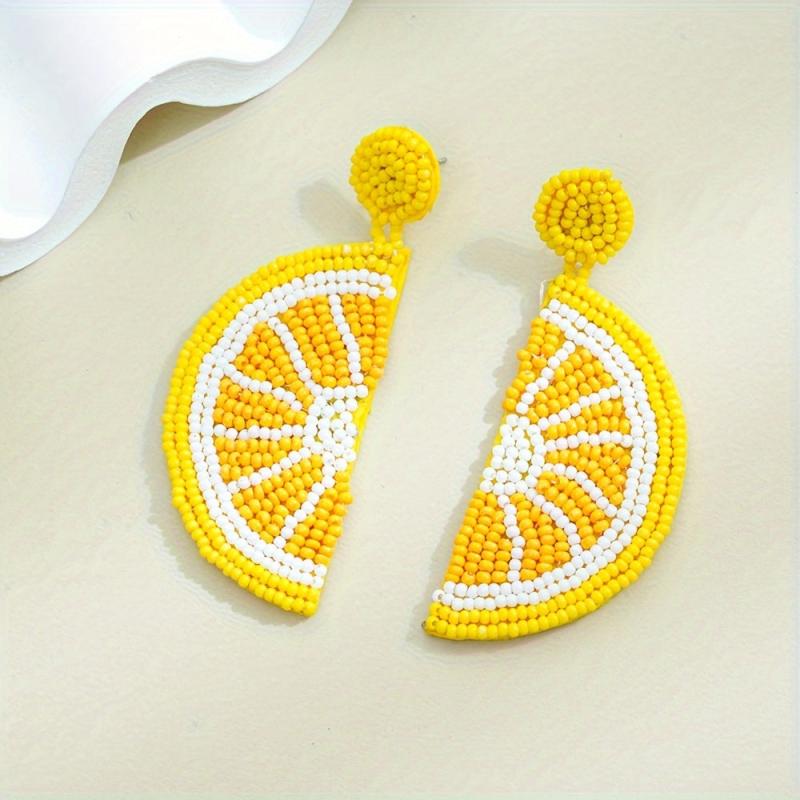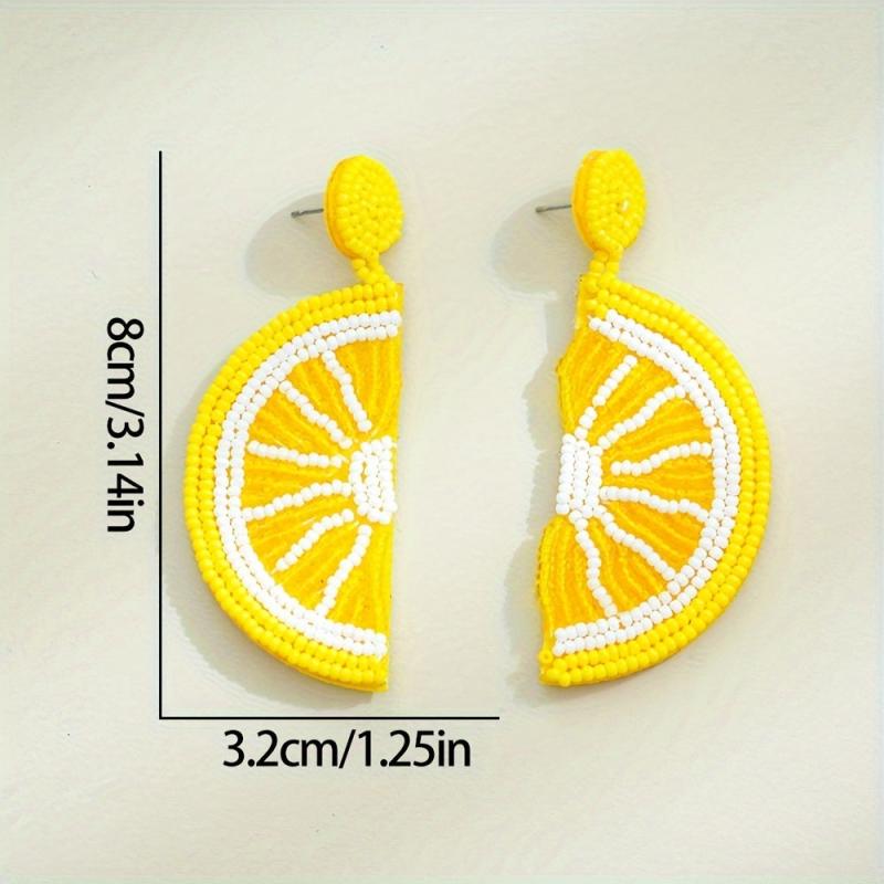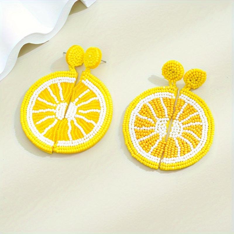 These beautiful lemon slice earrings are handcrafted with glass beads and stainless steel, making them perfect for daily wear or parties. The lemon slice design adds a fun and vibrant touch to your outfit.