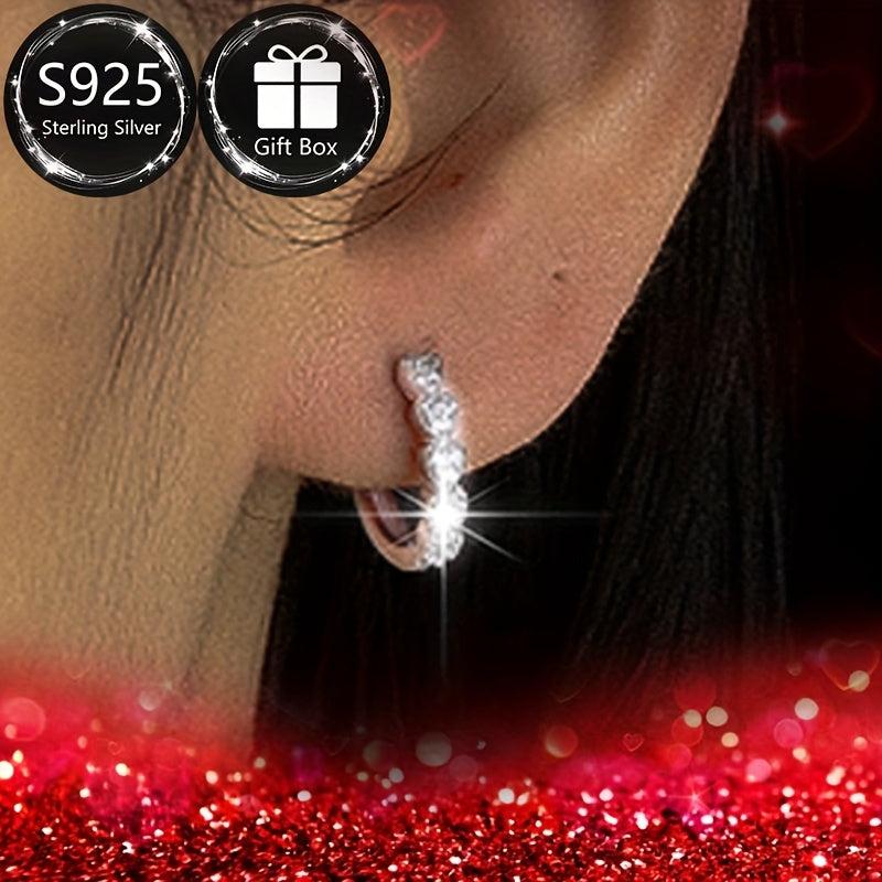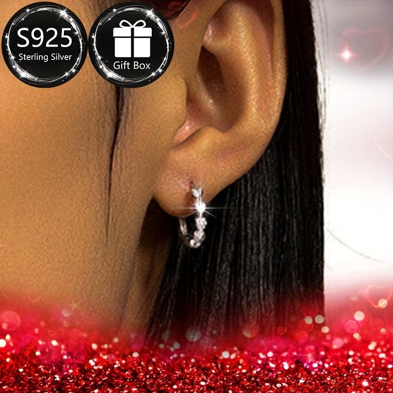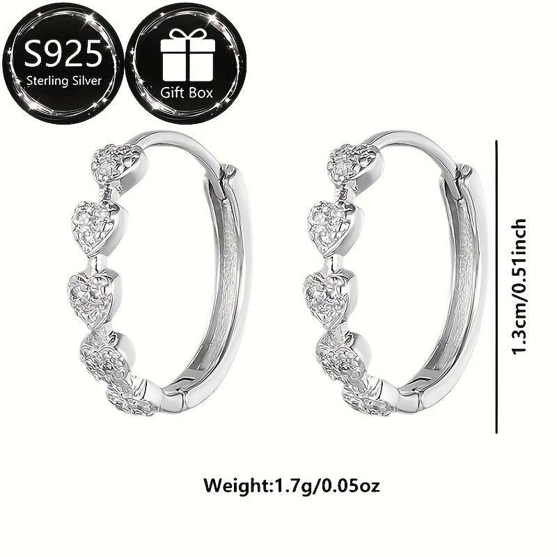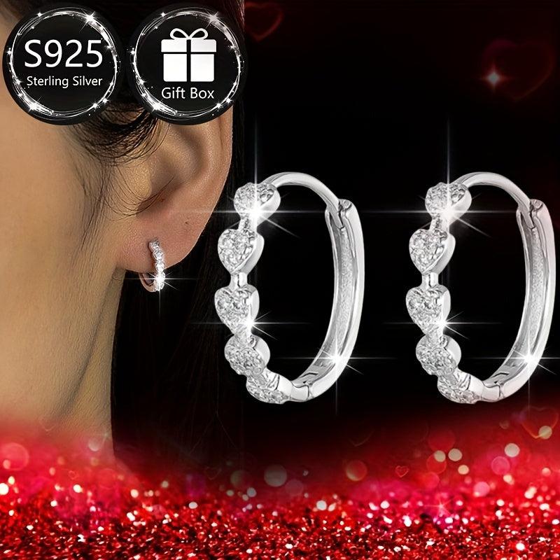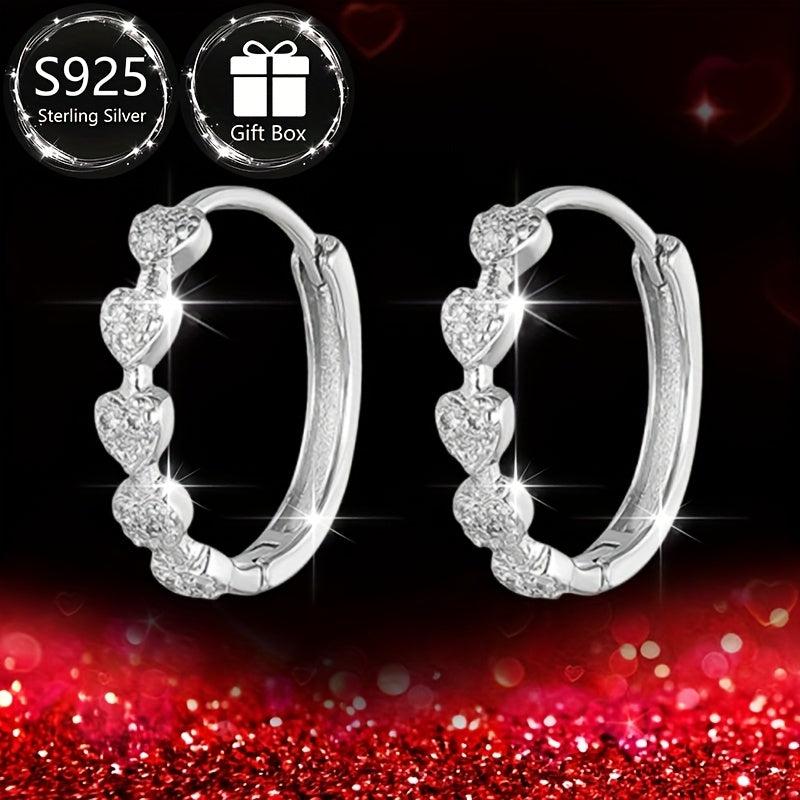 Elegant and timeless hoop earrings featuring heart chain design with synthetic cubic zirconia, crafted in 925 sterling silver. Comes in a heart-shaped box, perfect for Valentine's Day gift.