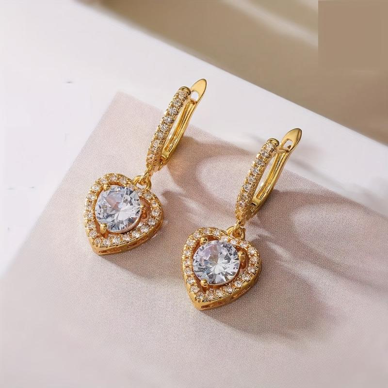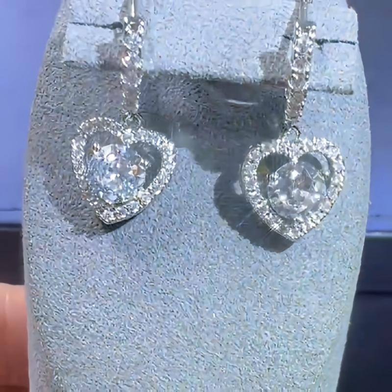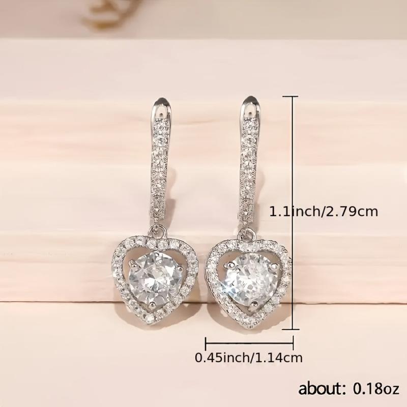 Gorgeous heart-shaped earrings with sparkling cubic zirconia stones. Made of silvery plated copper, suitable for daily wear and parties. Makes a perfect Valentine's Day gift.