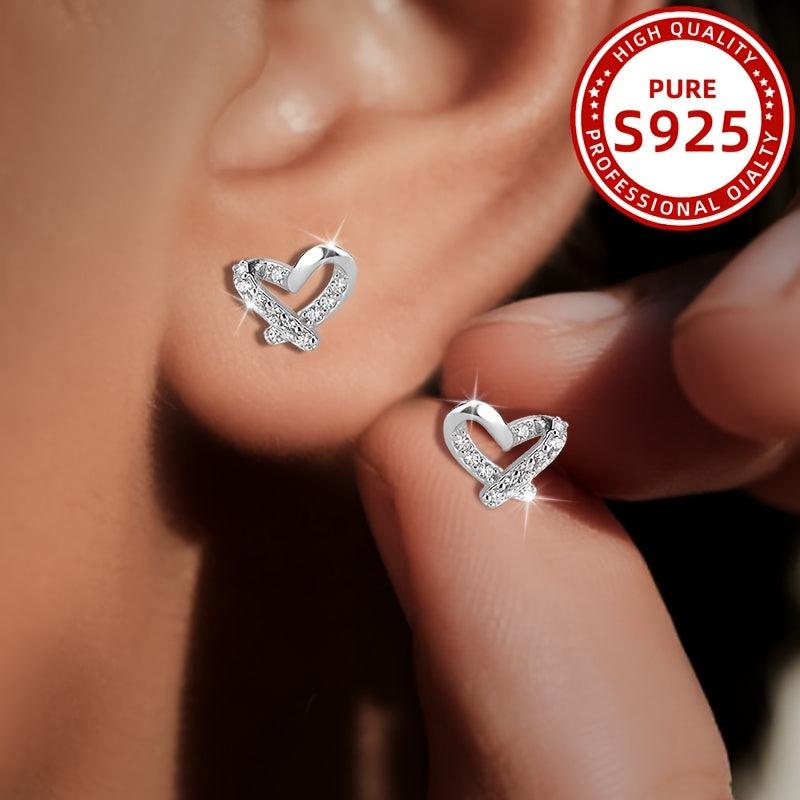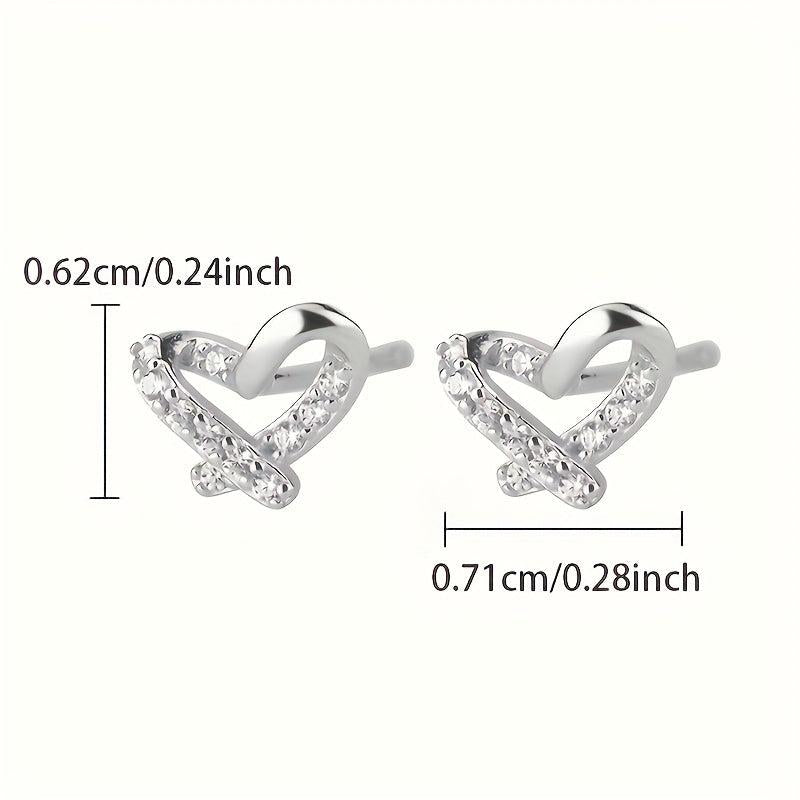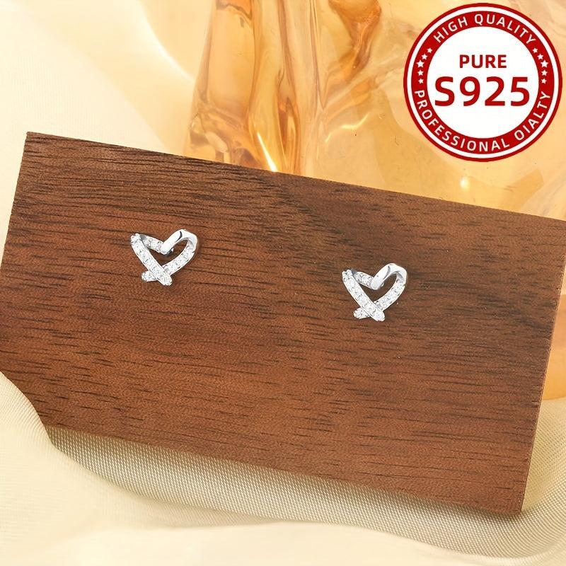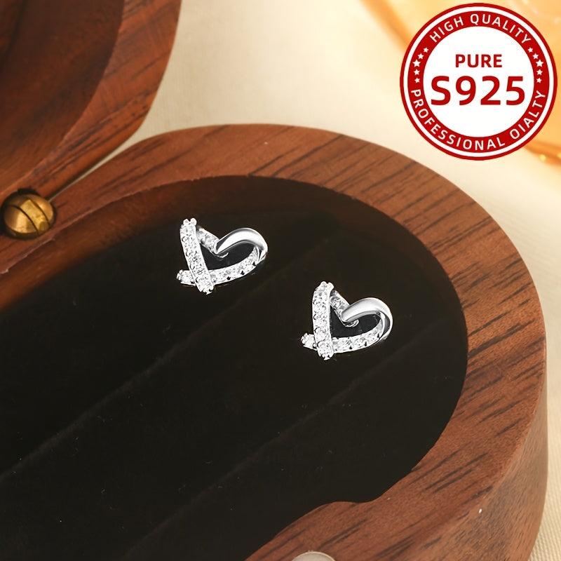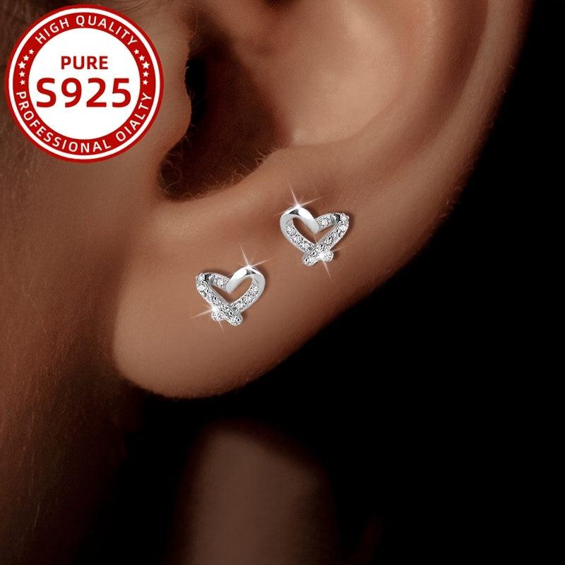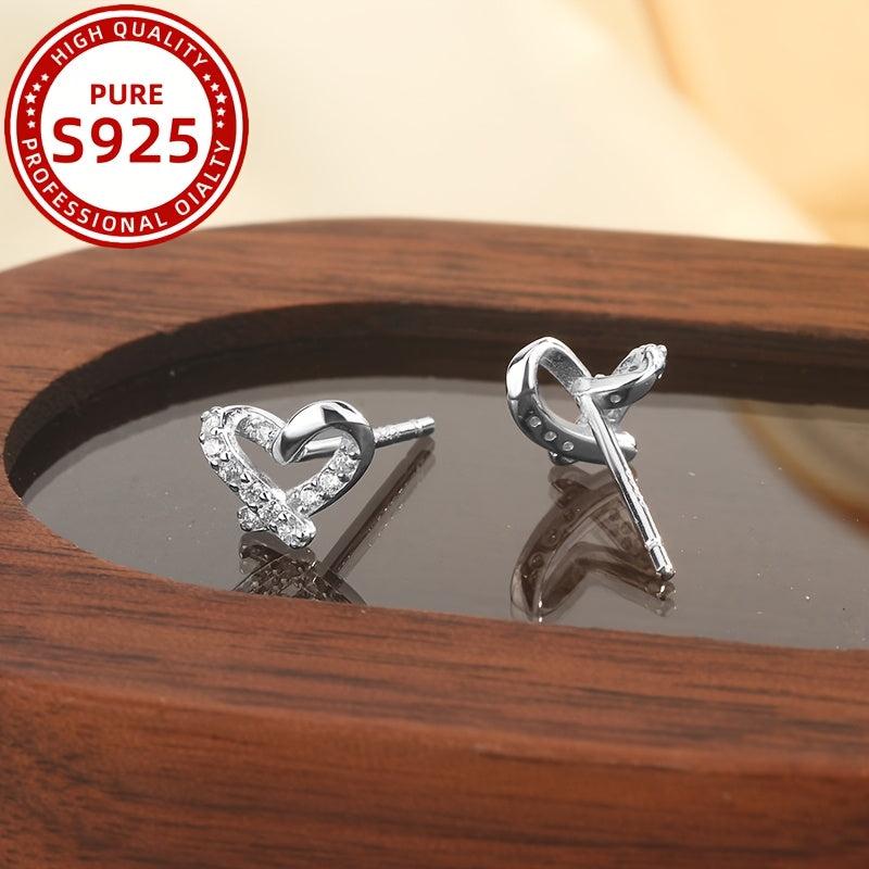 These heart-shaped stud earrings feature a minimalist design with synthetic zirconia inlay, weighing 0.6g and crafted in 925 silver. They are perfect for gifting or daily wear.