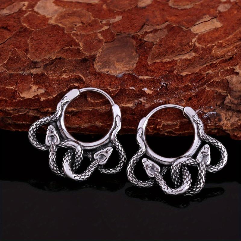 These stylish hip hop circle snake earrings are perfect for men. Made of high-quality stainless steel, they make a great gift for any occasion.