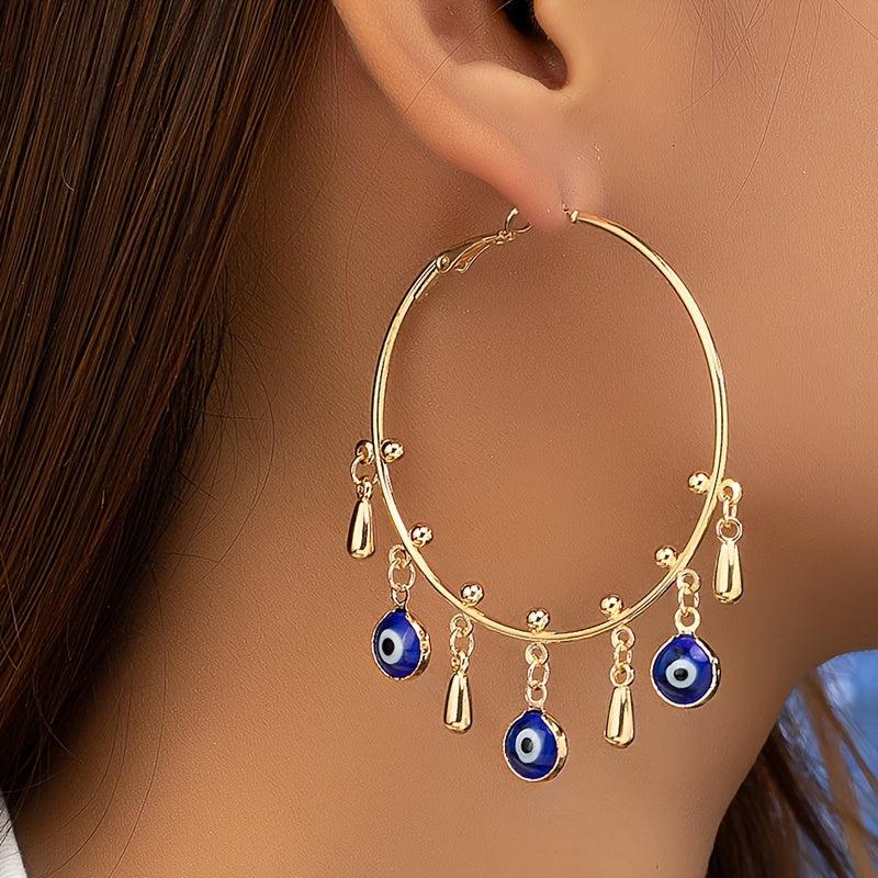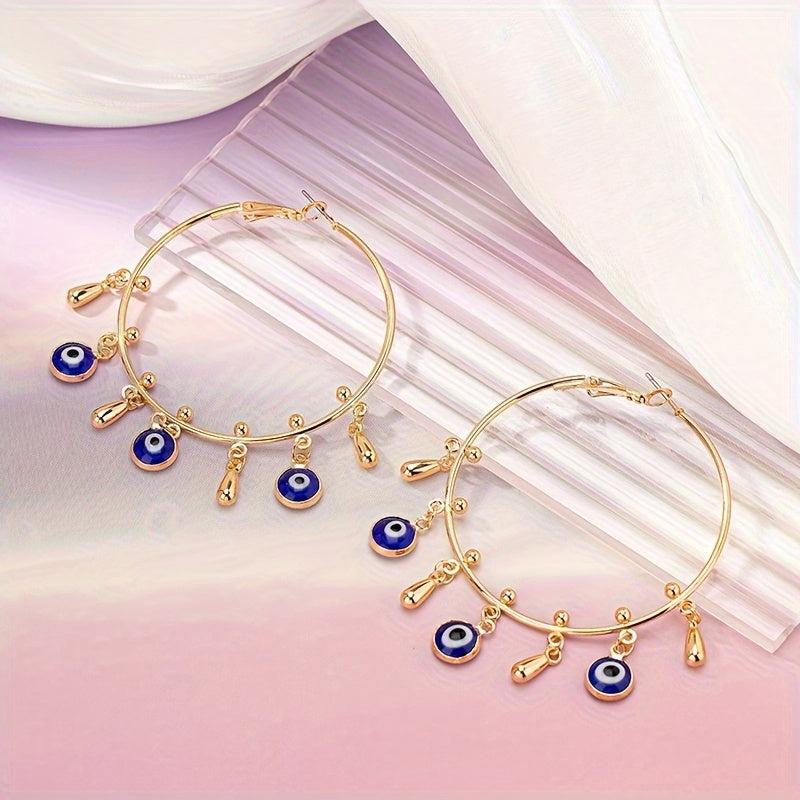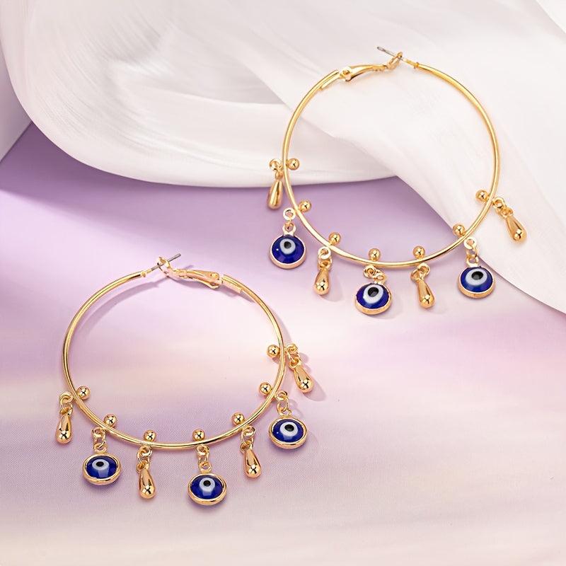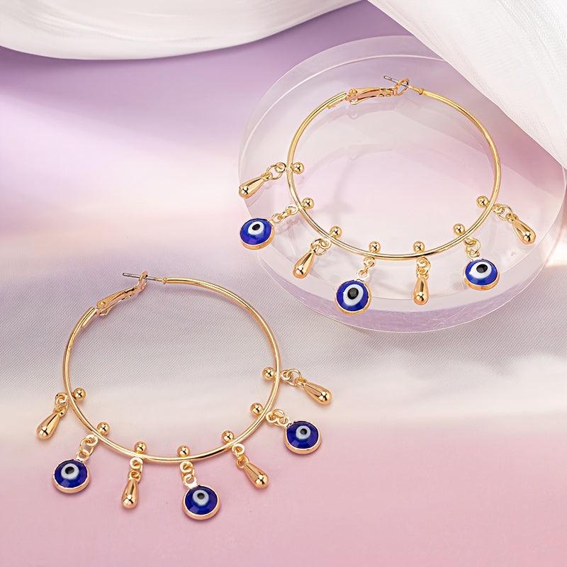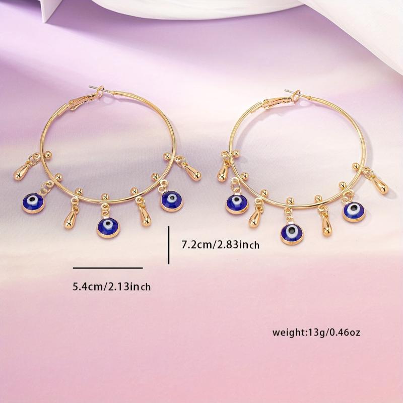 Add a touch of personality to your look with these exaggerated hoop earrings featuring a unique eye pendant. Made of durable alloy, these earrings are perfect for adding a vintage punk vibe to any outfit.