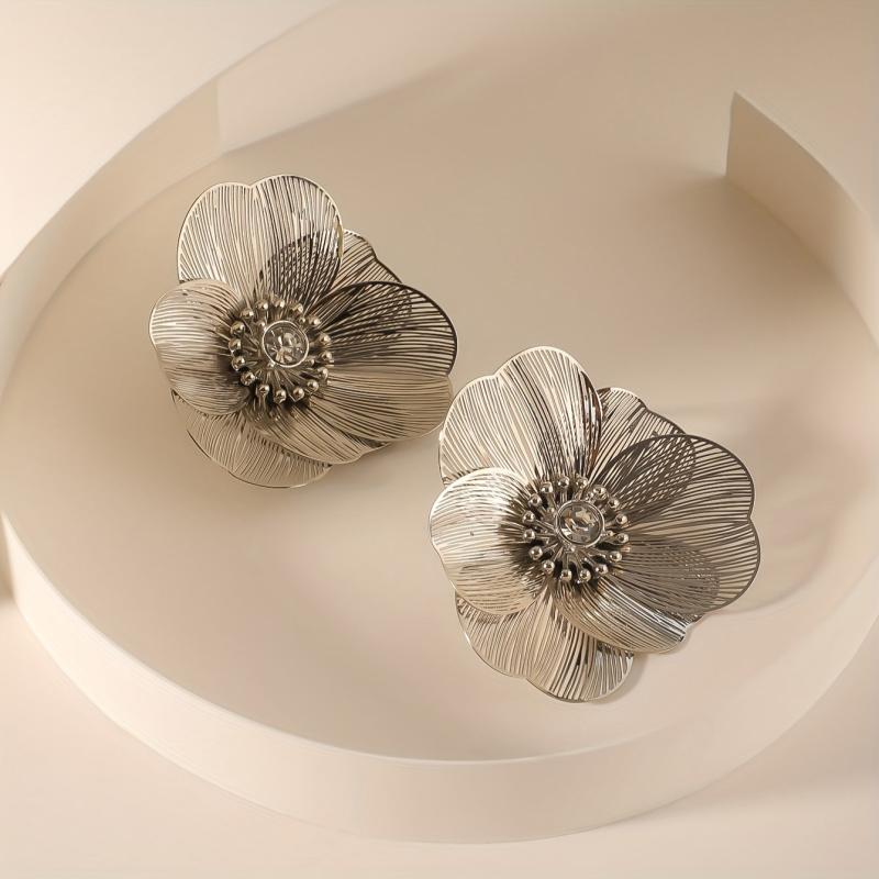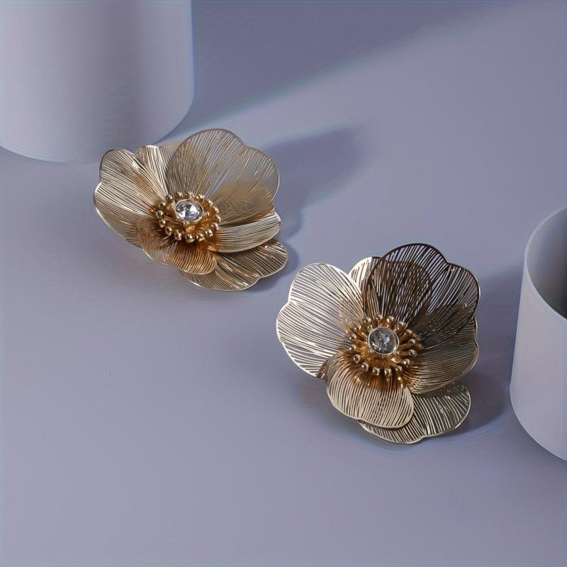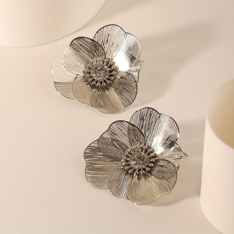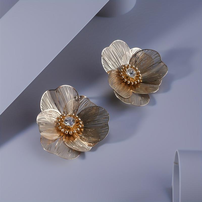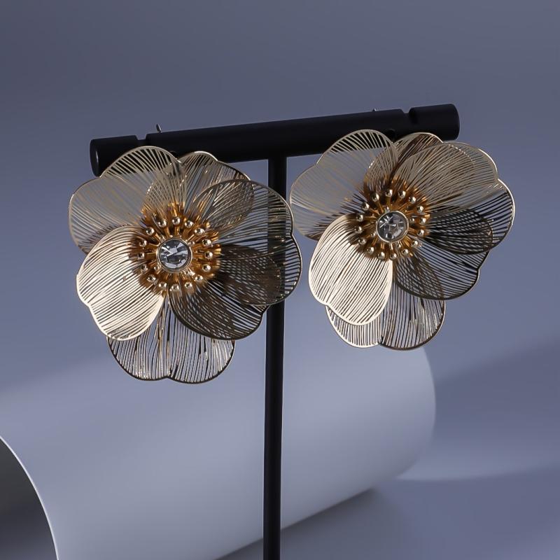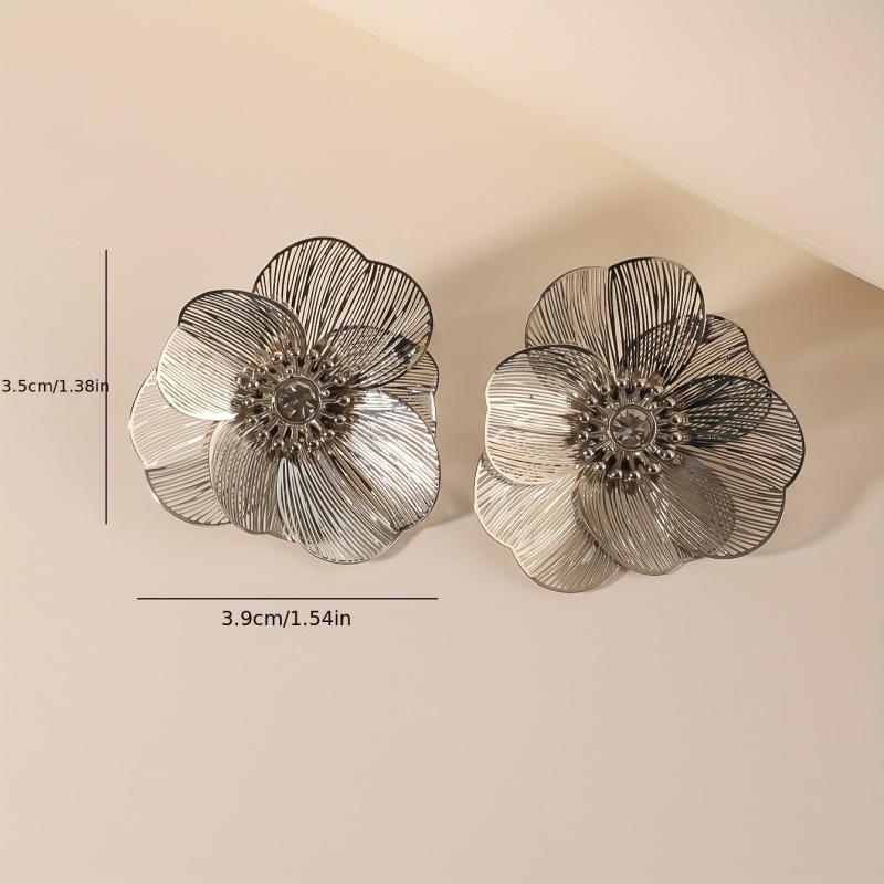 Elegant pair of sweet hollow flower stud earrings suitable for various occasions like holidays, birthdays, dates, parties, weddings, and more.