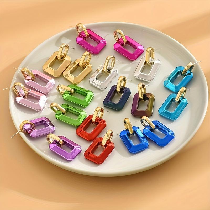 These dangle earrings feature a hollow rectangle shape with a glossy finish, making them the perfect accessory for daily casual wear. They are a delicate and stylish gift for women.