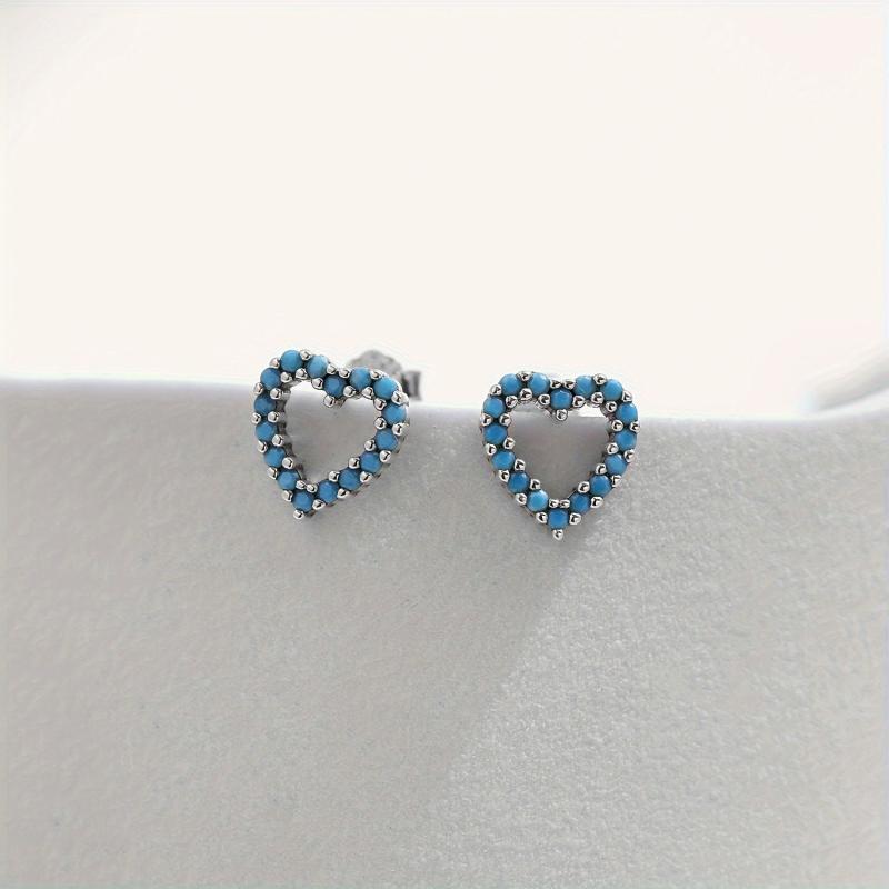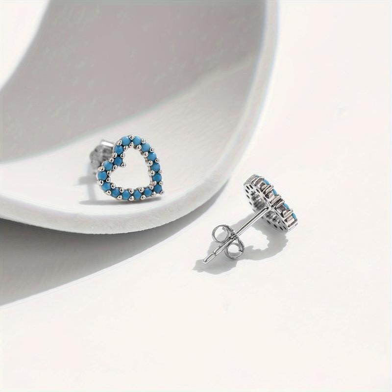 These cute heart stud earrings are made of hypoallergenic 925 sterling silver with turquoise accents. Perfect for daily wear or special occasions. Ideal gift for any occasion.