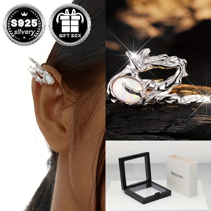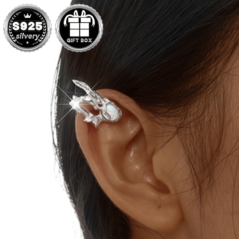 This 925 pure silvery ear bone clip features a unique texture, perfect for Halloween gothic styles. Hypoallergenic and lightweight, weighing about 3.5g.