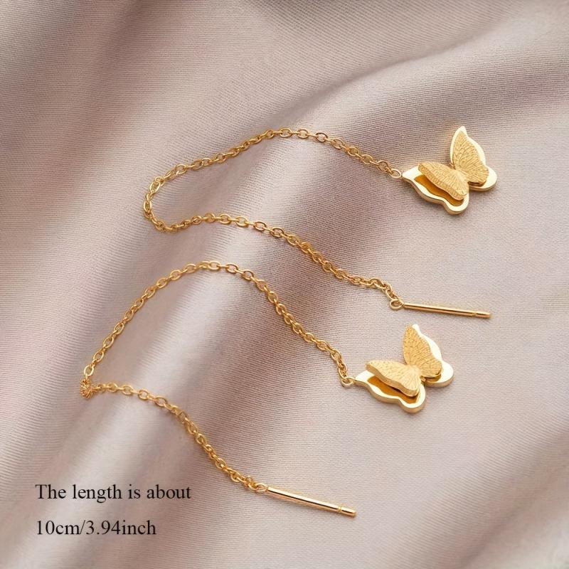 Enjoy these 18K golden plated butterfly tassel earrings that are anti-fading, comfortable, and high fashionable. Perfect for daily wear.