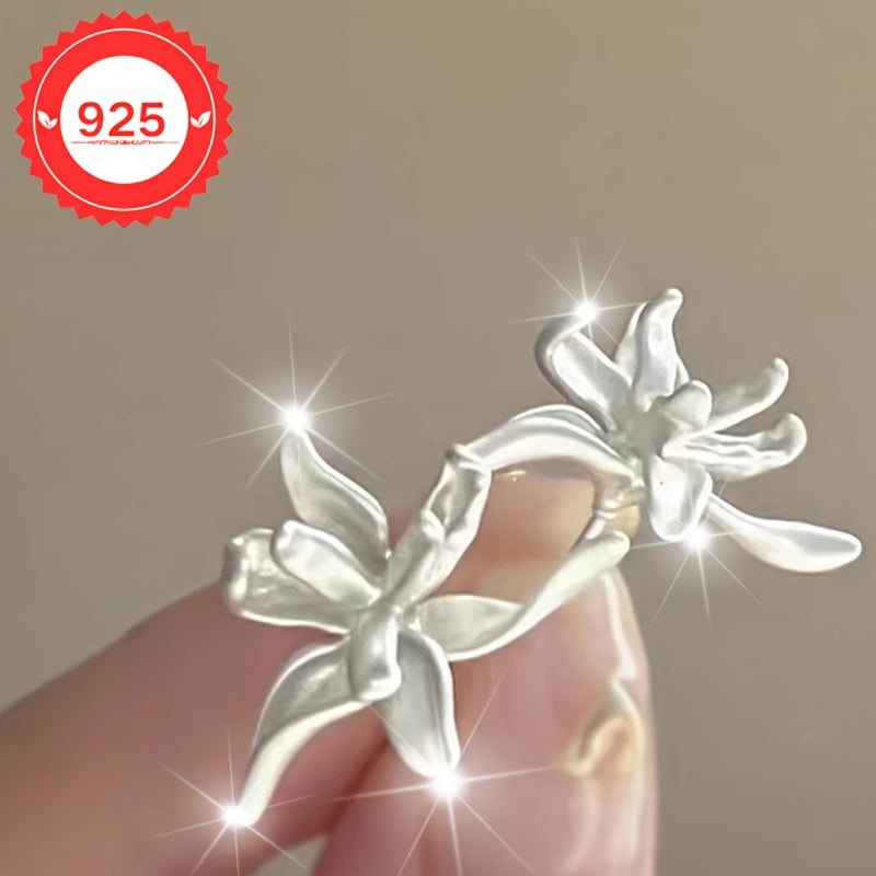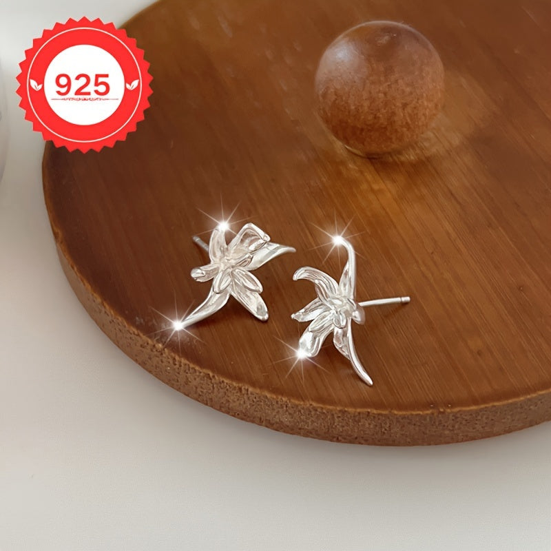 These iris flower stud earrings are crafted from S925 sterling silver, making them a timeless gift for women. Ideal for daily wear and parties, these earrings are a perfect accessory.