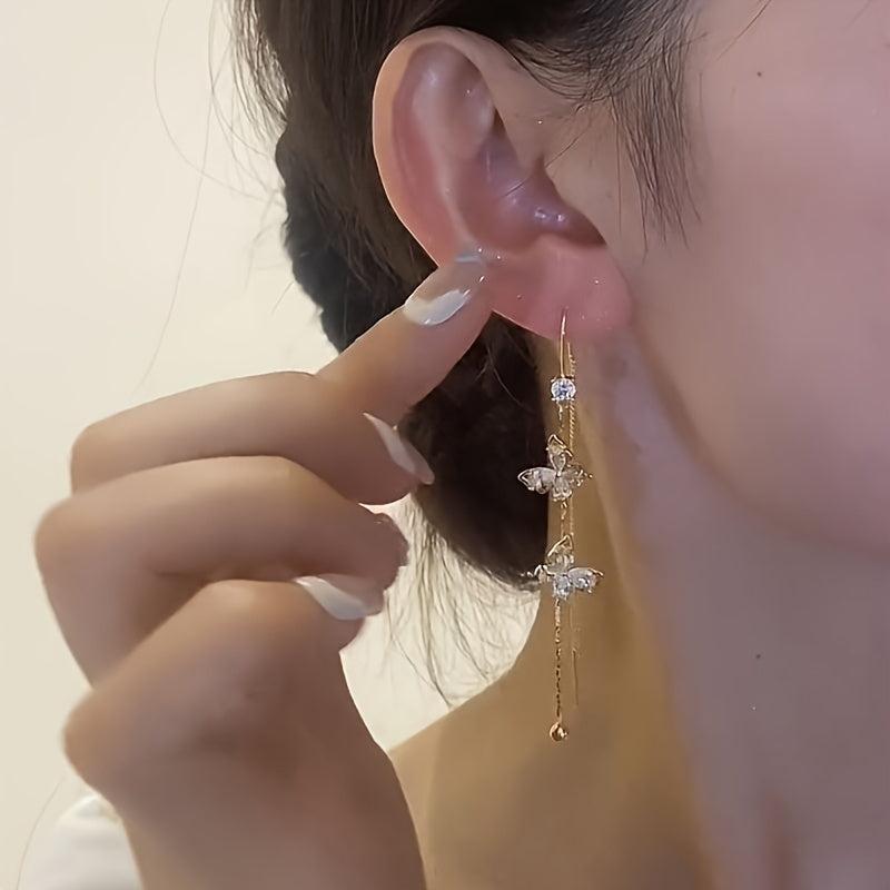 These delicate Japanese style earrings feature a double butterfly design. Perfect for daily wear, these earrings are lightweight and anti-loss, with a comfortable earline for girls' jewelry.