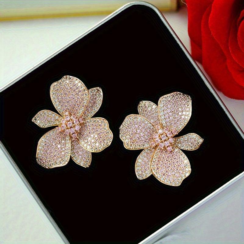 These sweet large flower earrings are embellished with sparkling synthetic zirconia, making them perfect for parties, weddings, and casual days. Show your love with these stunning earrings.